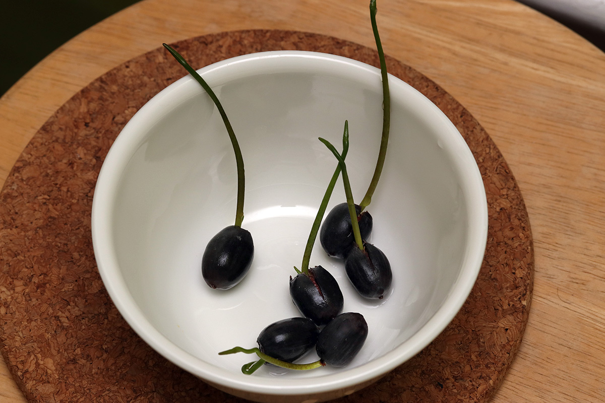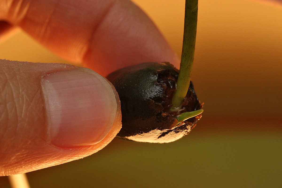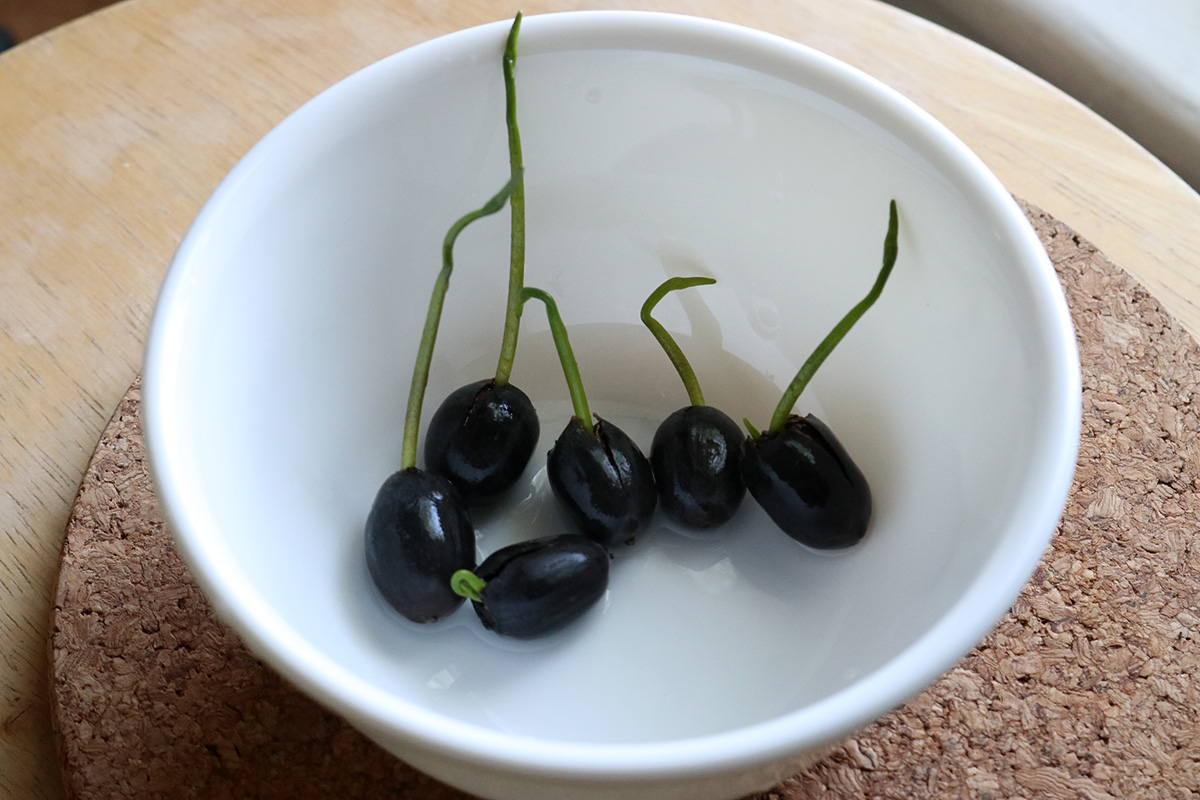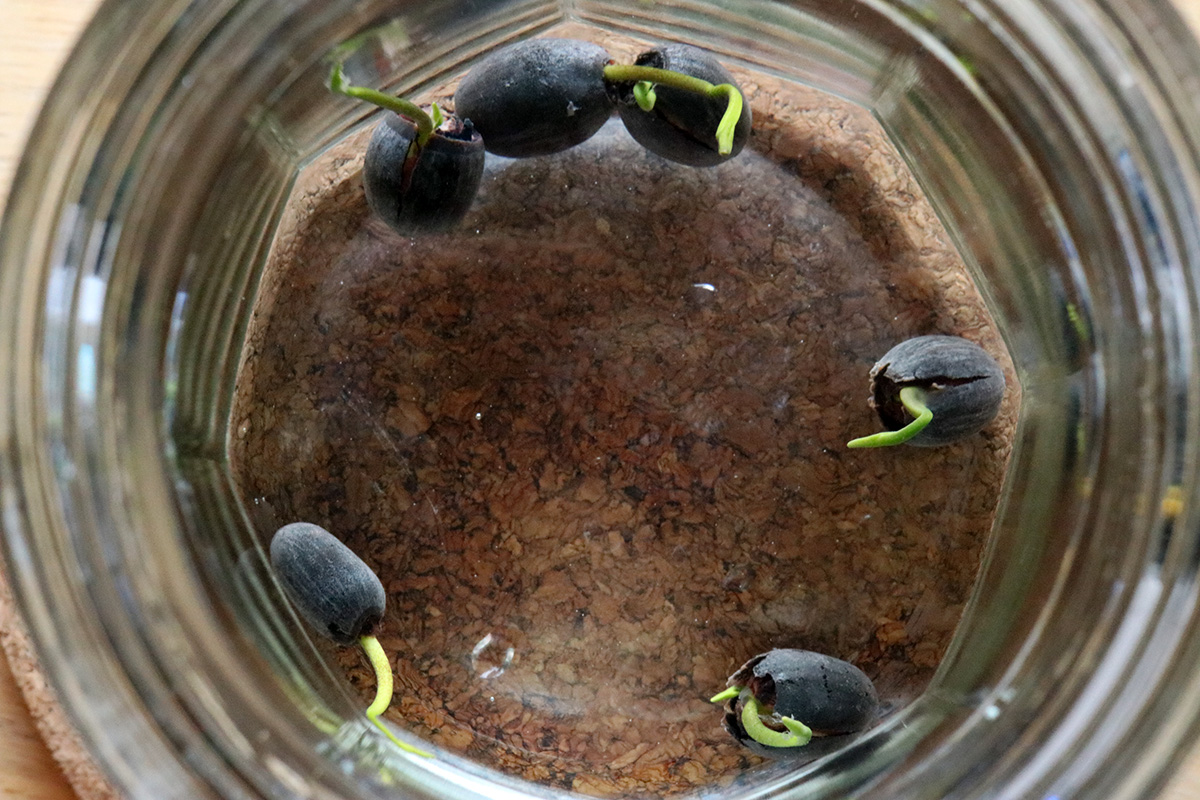 i was eager to get home to check out the latest growing lotus time lapse video. annie wasn't home yet, which was a surprise. besides the lotus stems getting longer, i noticed something else in the video: in the backyard is my jar of nonviable seeds, but one of the seeds seemed to be moving around a bit.