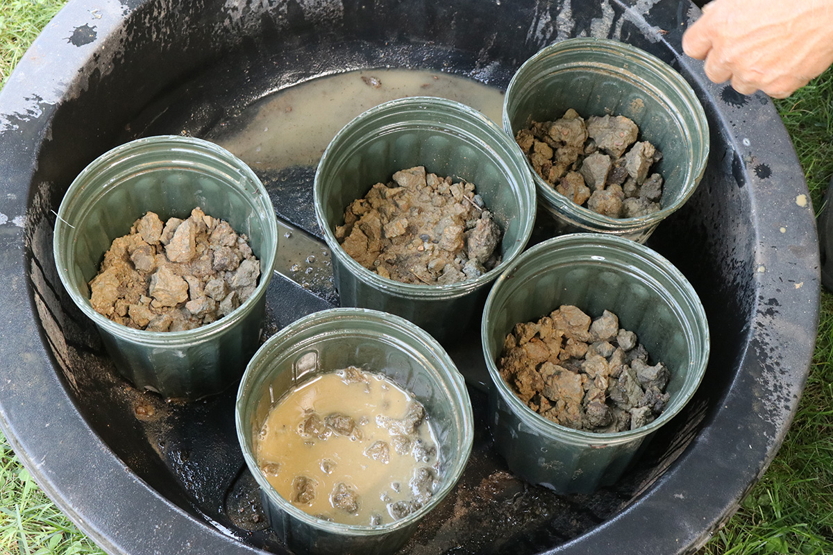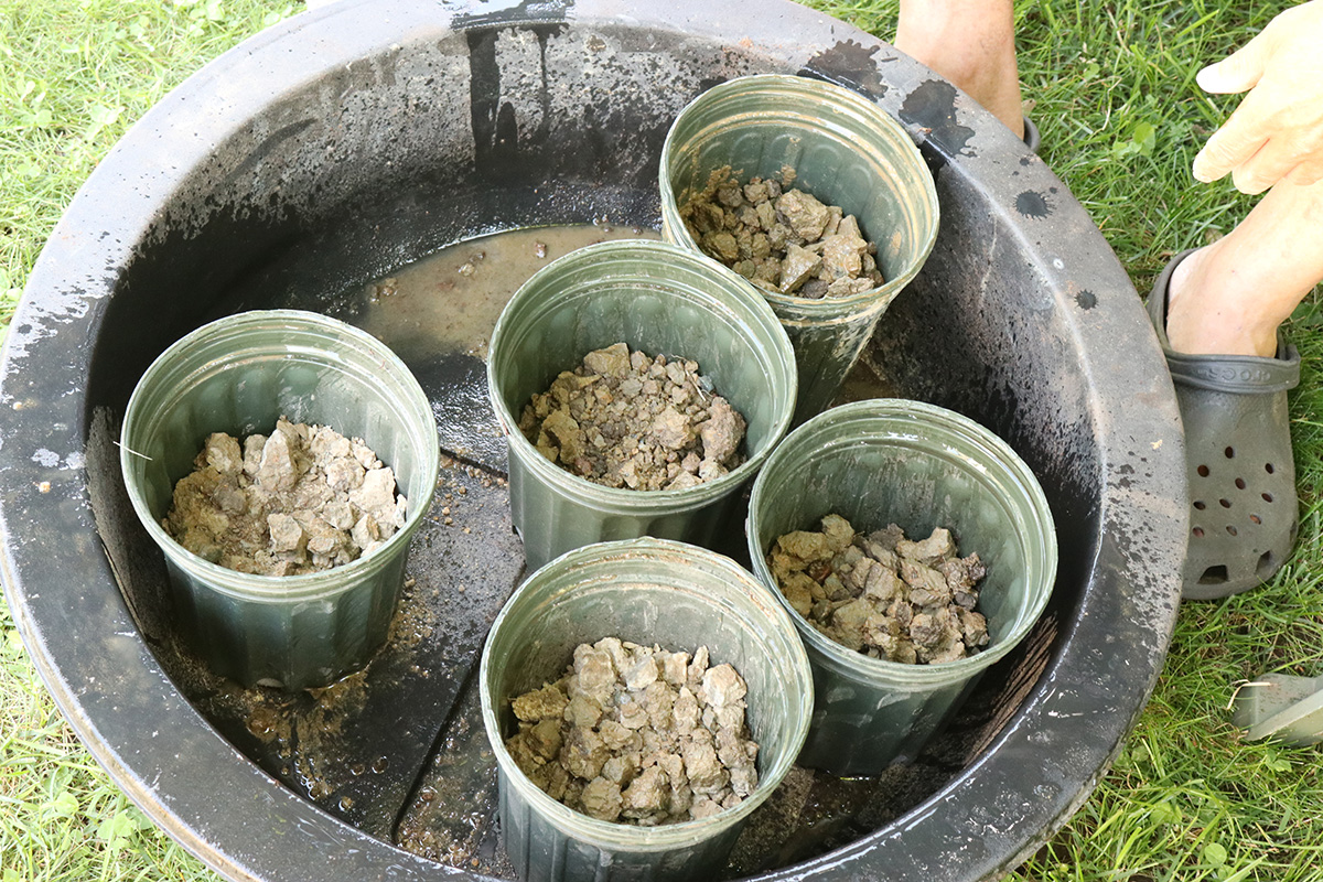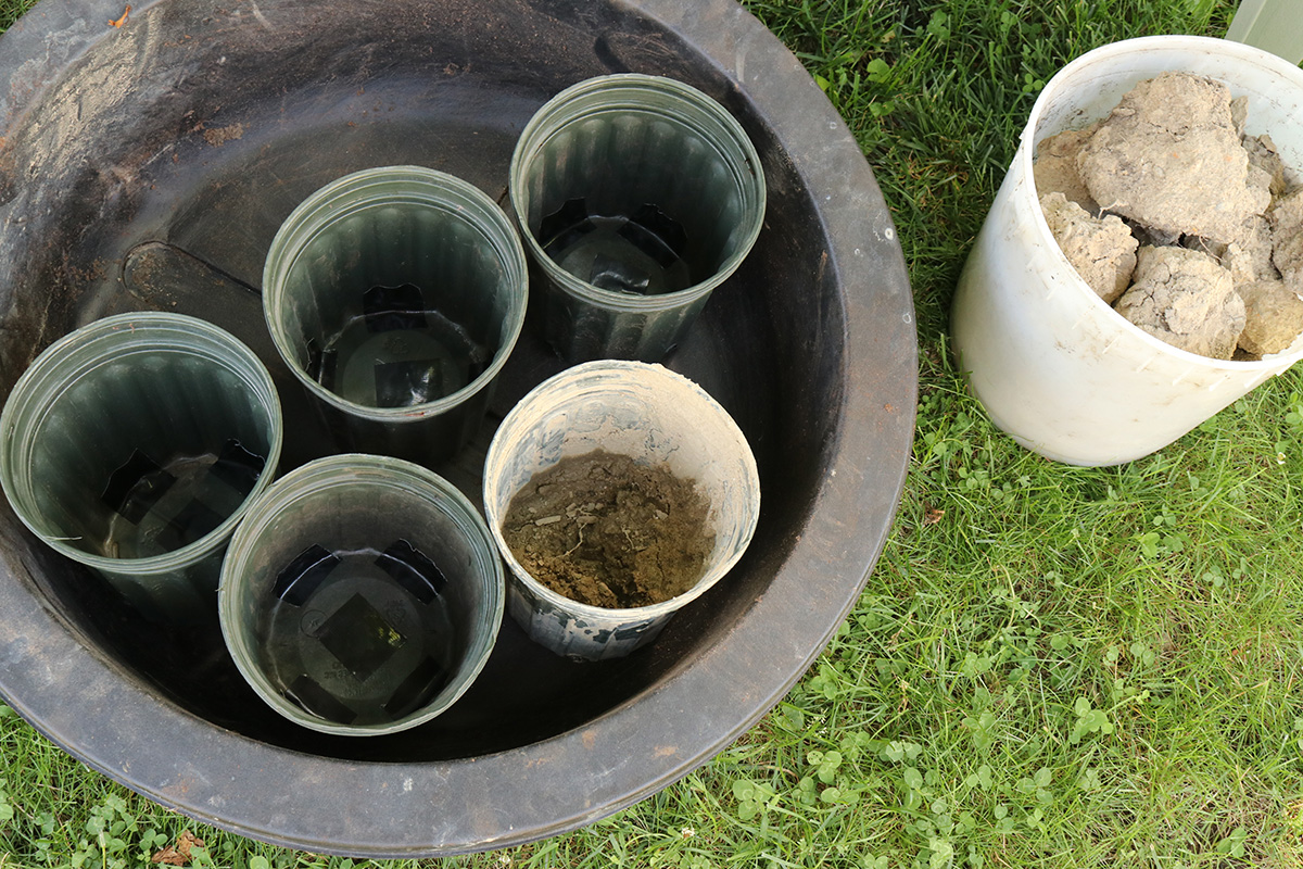 since i'd be transplanting my lotus seedlings within the next few days, my father and i started preparing the lotus pots. 6 pots since i have 6 germinating seedlings. each pot contains 2/3 bottom layer of clay and 1/3 top layer of sand.