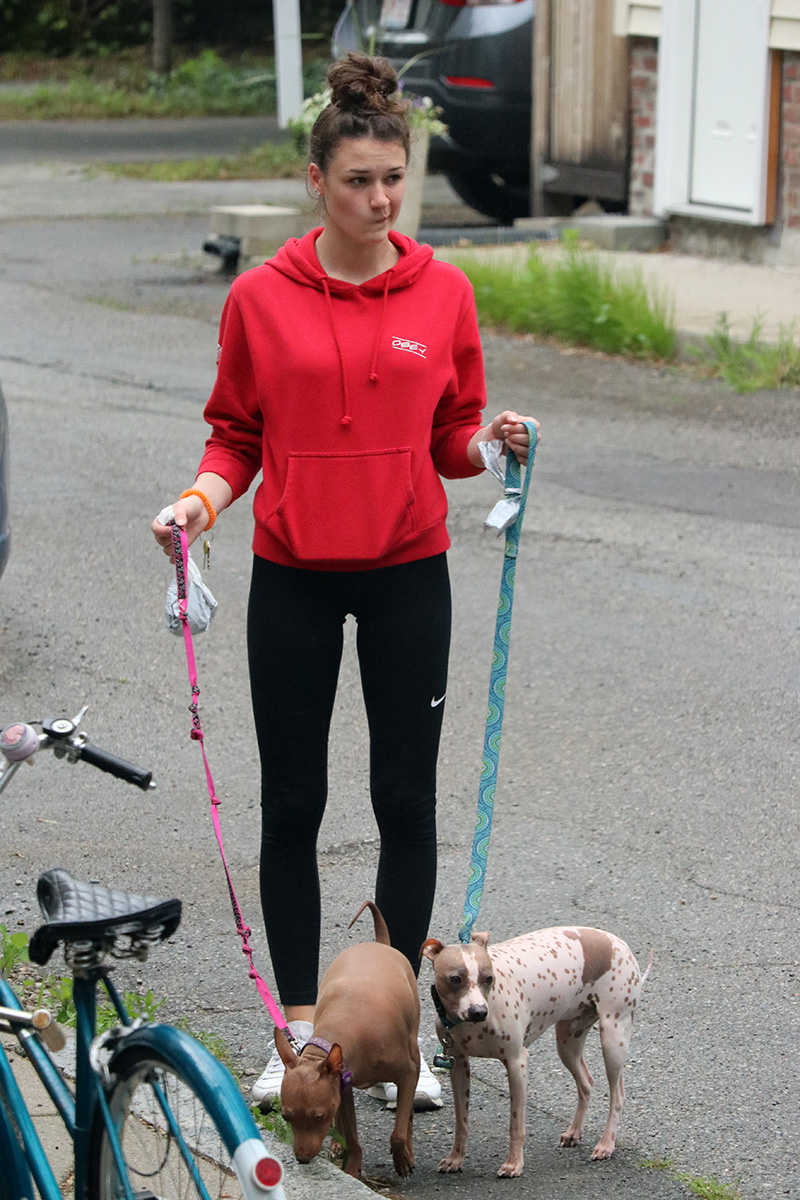 annie came home around 6pm, immediately went to the kitchen to make dinner. i heated up some french bread pizza in the oven for my own dinner. later in the evening she asked me if i had a vacuum because she wanted to clean all the hair off of her bedroom floor.