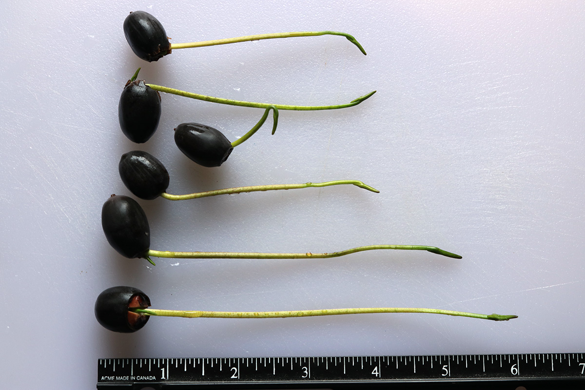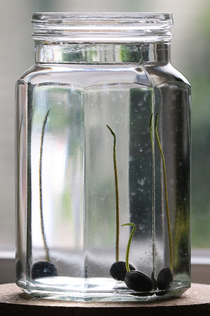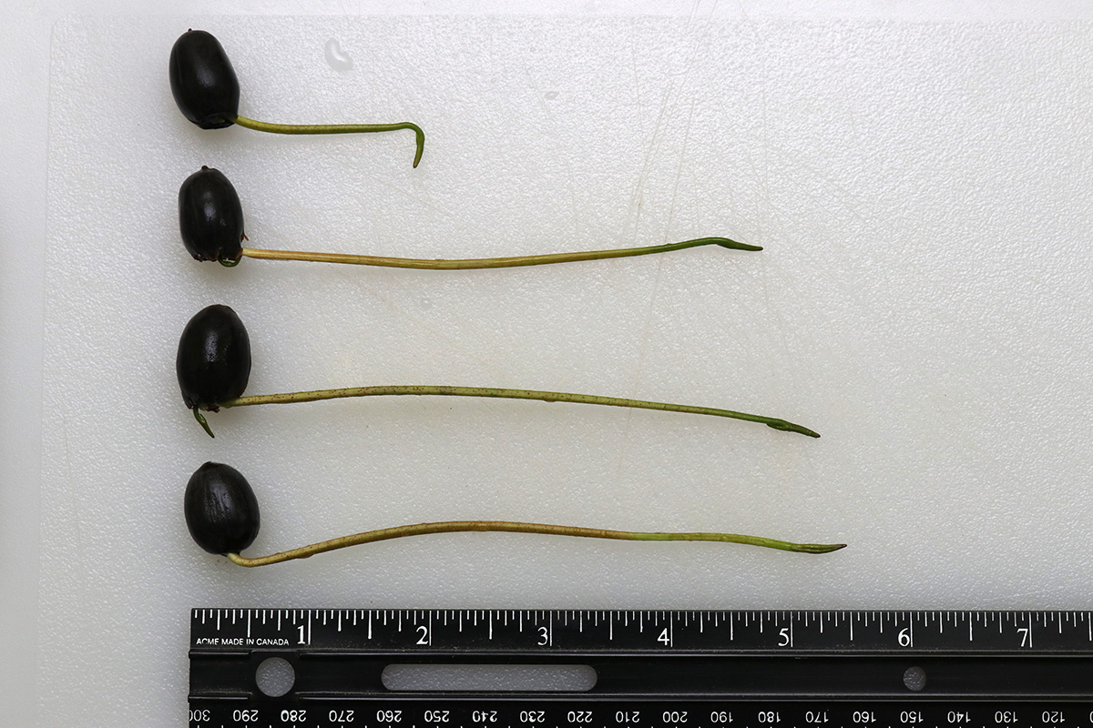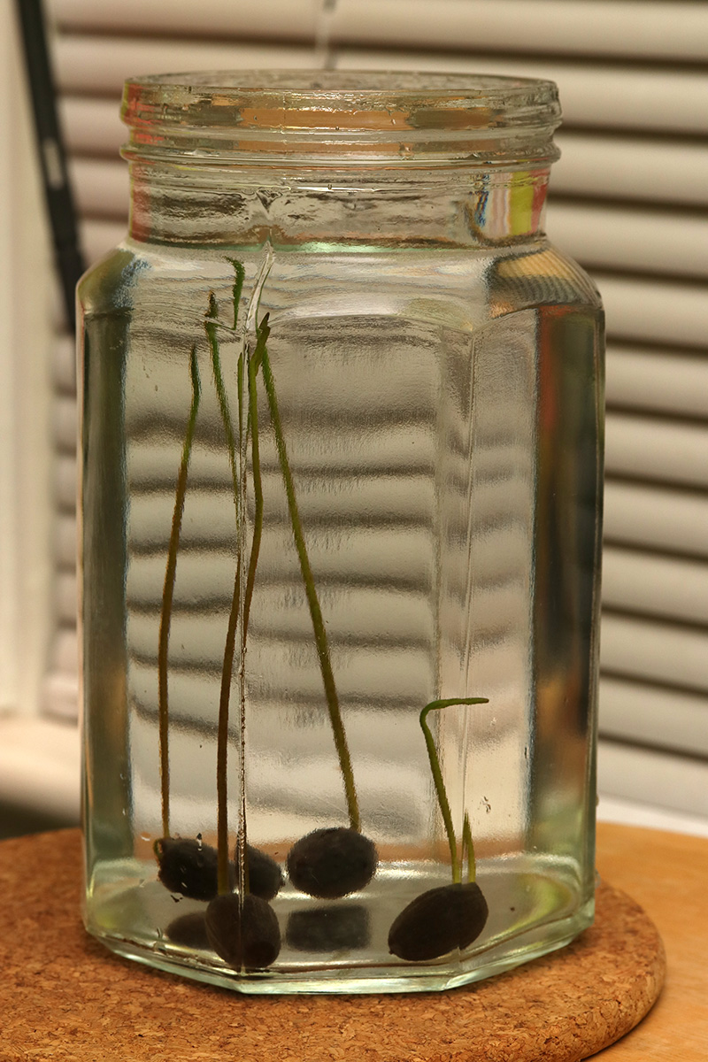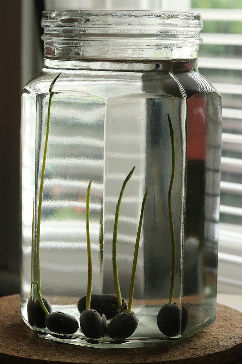 3 of the seedlings are already 5-5-1/2" long, they will definitely need to be planted tomorrow (wednesday). i will probably take them all to belmont and ask my father to do a water change on the last seedling, which based on how the other seeds have developed, will probably be long enough to plant by thursday. the longest seedling also has the tiniest sprout opening, i wonder if that's the secret of a healthy germination. however, the longest seedling doesn't have a second coin leaf sprout yet, while all the other seedlings do.