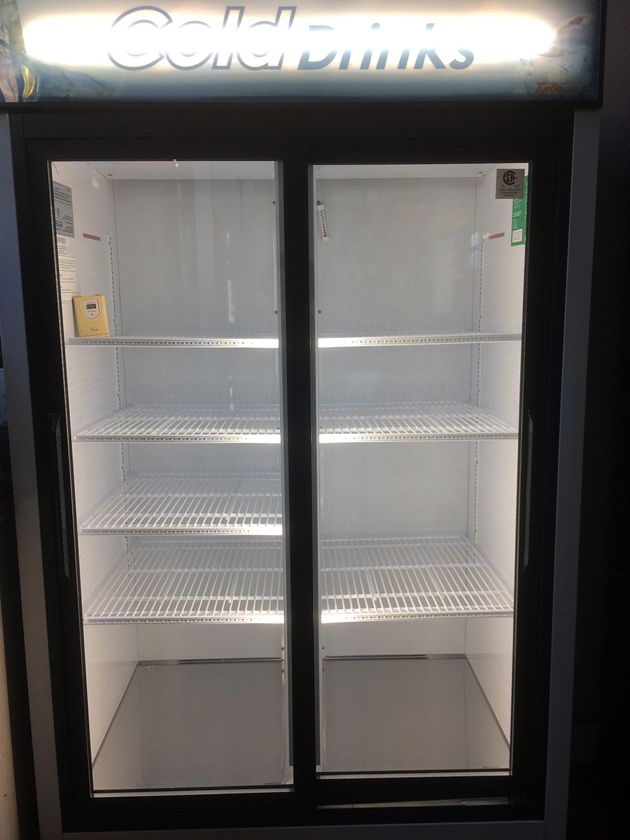 the first thing i noticed was how small the refrigerator was. i thought we were getting a full-size fridge, but this one was only half the size of the old fridge. true, we didn't really need the full-size fridge (much of the older fridge was empty space) and a smaller fridge would consume less electricity, but why my father and sister decided to make the switch i don't know, especially after i went online to hunt for a fridge that matched our old one. this new fridge was originally intended for cold drinks, which was why it was labeled thus on the very top. but my parents like the sliding glass doors, which makes getting things much easier and also easier to see right away when supplies are needed.