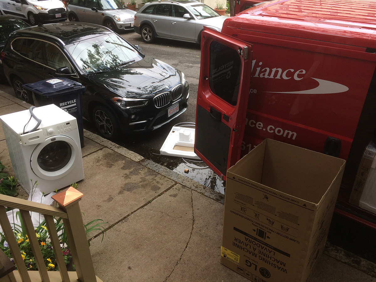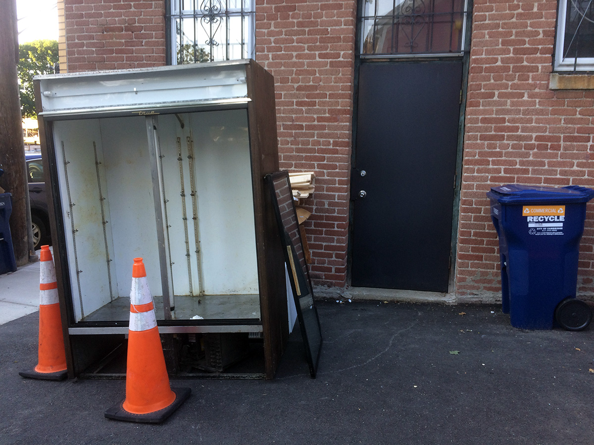 it was such hard work getting the new fridge inside, it seemed too difficult to get the old fridge out, which was twice as large. junk removal people are coming tomorrow morning to haul everything away, and for $100 more they'd come and remove the old fridge for us.