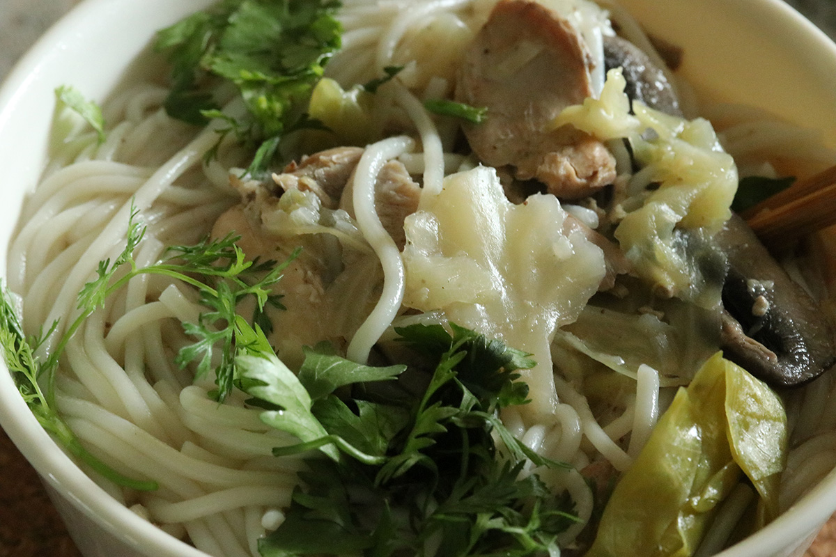 my mother made some chicken noodle for lunch, served with some leftover spicy cellophane noodle salad she made yesterday for my aunt's arlington dinner.