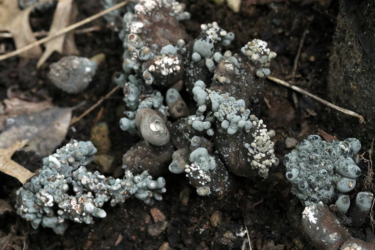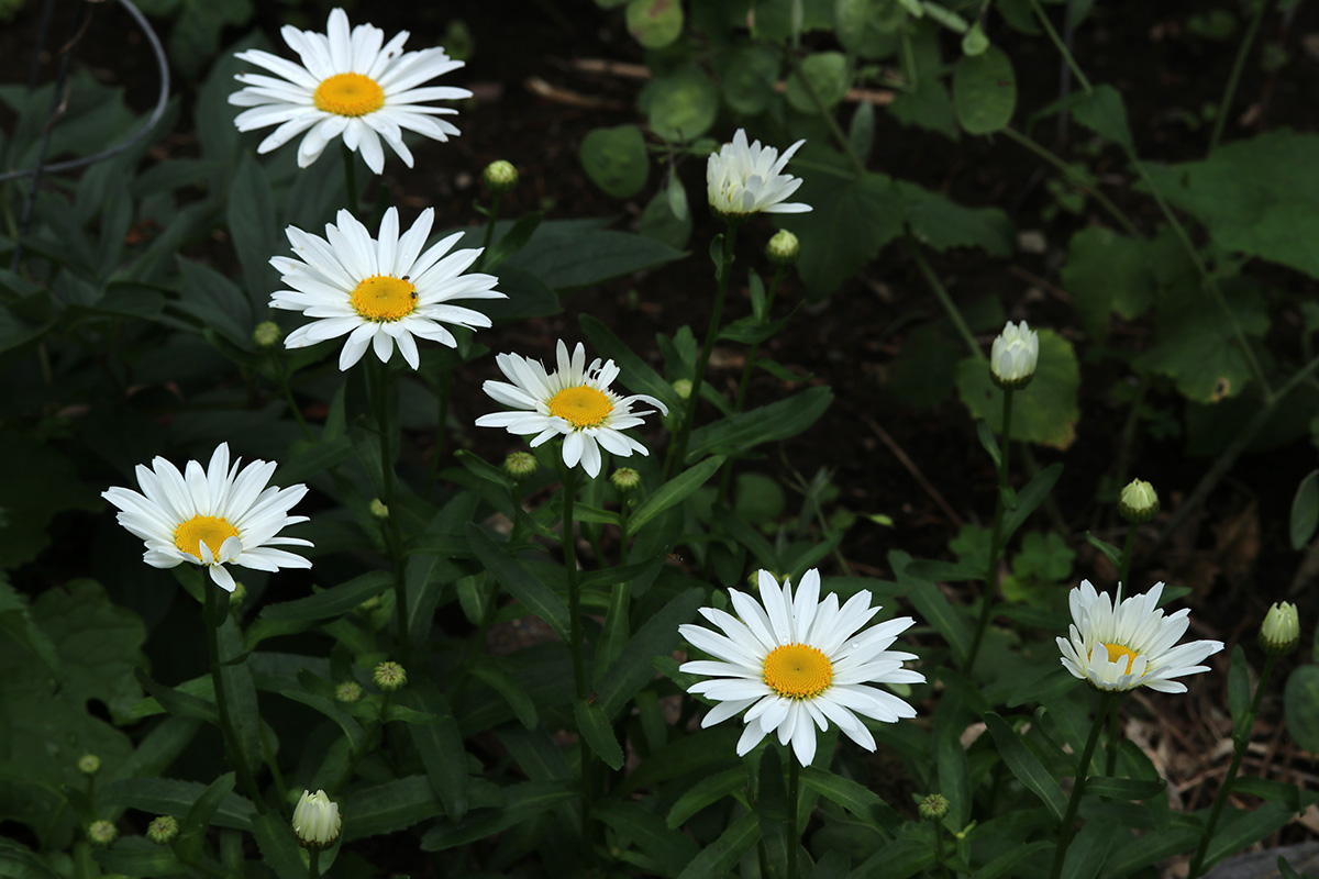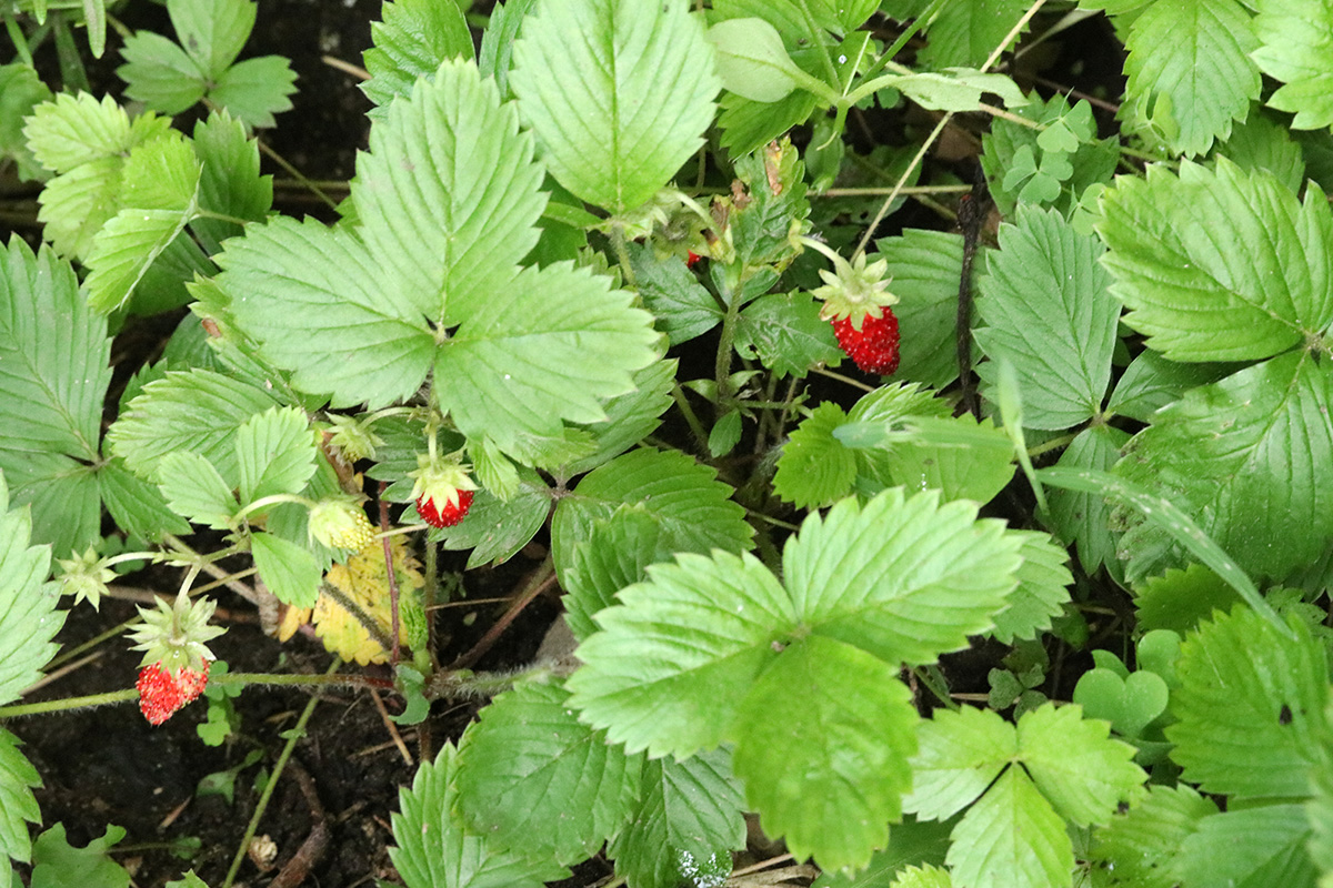 of that daisies that are above 3ft tall, not only are the plants big, but the flower buds as well, the biggest i've seen. some fungus that look like dead man's fingers have appeared behind the pussy willow tree in the backyard and behind the sheep laurel bush in the frontyard. the patch of wild strawberries have fruited, little tiny red strawberries slightly bigger than a raisin, not worth picking them off the ground.