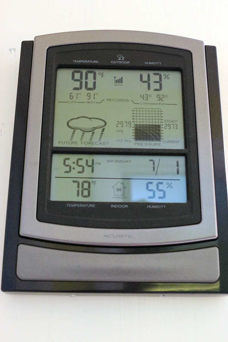 around 6pm i checked on the status of our basement AC and dehumidifier setup. my father had to lower the temperature on the AC to 65°F, as it wouldn't dehumidify unless the AC was also running to some degree. the humidity on the hygrometer said it was 59% (lowest was at 56%), a decent number, since we set the dehumidifier at the other side of the basement to 60%. there was already draining into the bucket to a height of 2". the solar panels by that point was only generating 1.44kW. but here's the thing: the outdoor humidity was just 43%, while inside the house it was 55%. so even if we did have the AC or dehumidifier running, the humidity would've dropped on it's own to 40-50%. so the test was inconclusive. what we need is a really humid day and running either the AC or the dehumidifier and see if the basement humidity level drops. my personal feeling is the AC only lowers the humidity slightly if at all, with the downside of turning the already cool basement even colder. the dehumidifier is designed to dehumidify, the only downside is it might use more electricity than the AC.