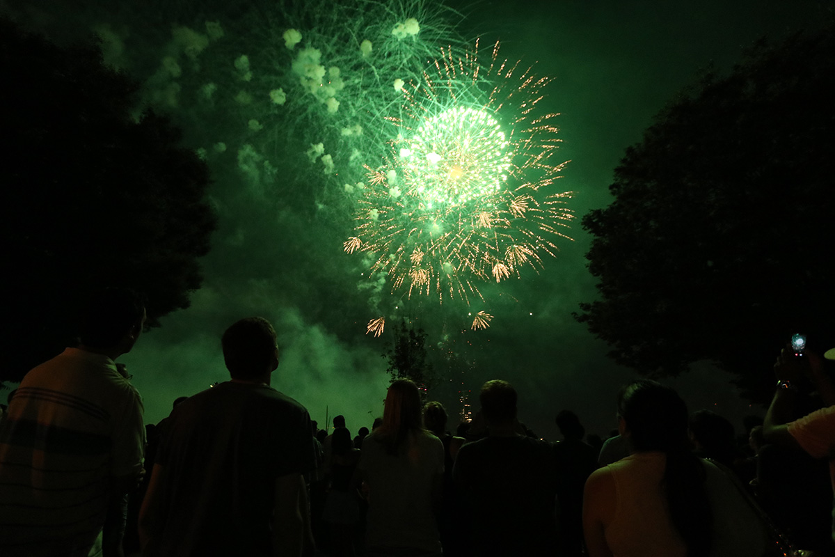 i had my new canon 80D, along with the wide angle lens and my tamron f/2.8 18-50mm lens. i found a spot close to the river next to a tree. when the fireworks started, i noticed people were leaving because the tree was blocking there view. once i got a little bored, i moved as well, found a better spot on the street between groups of people, but had a clear view of the sky.