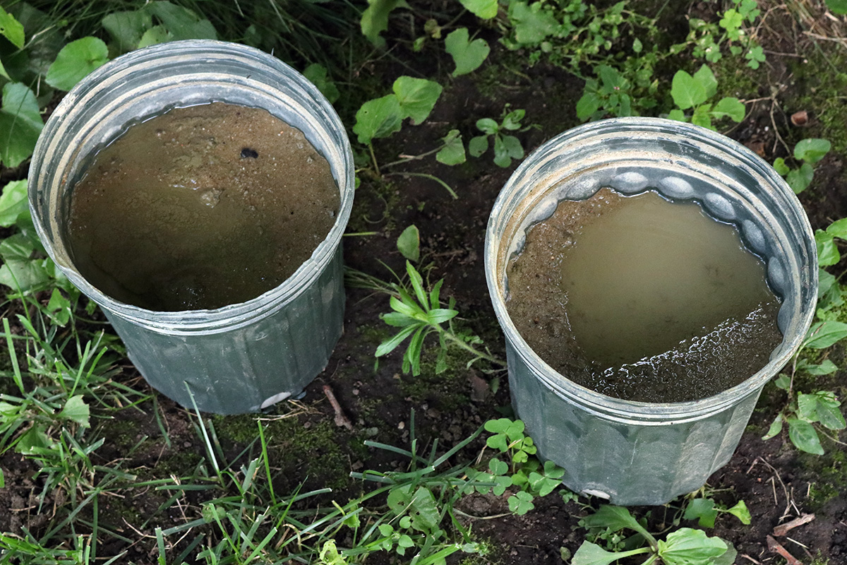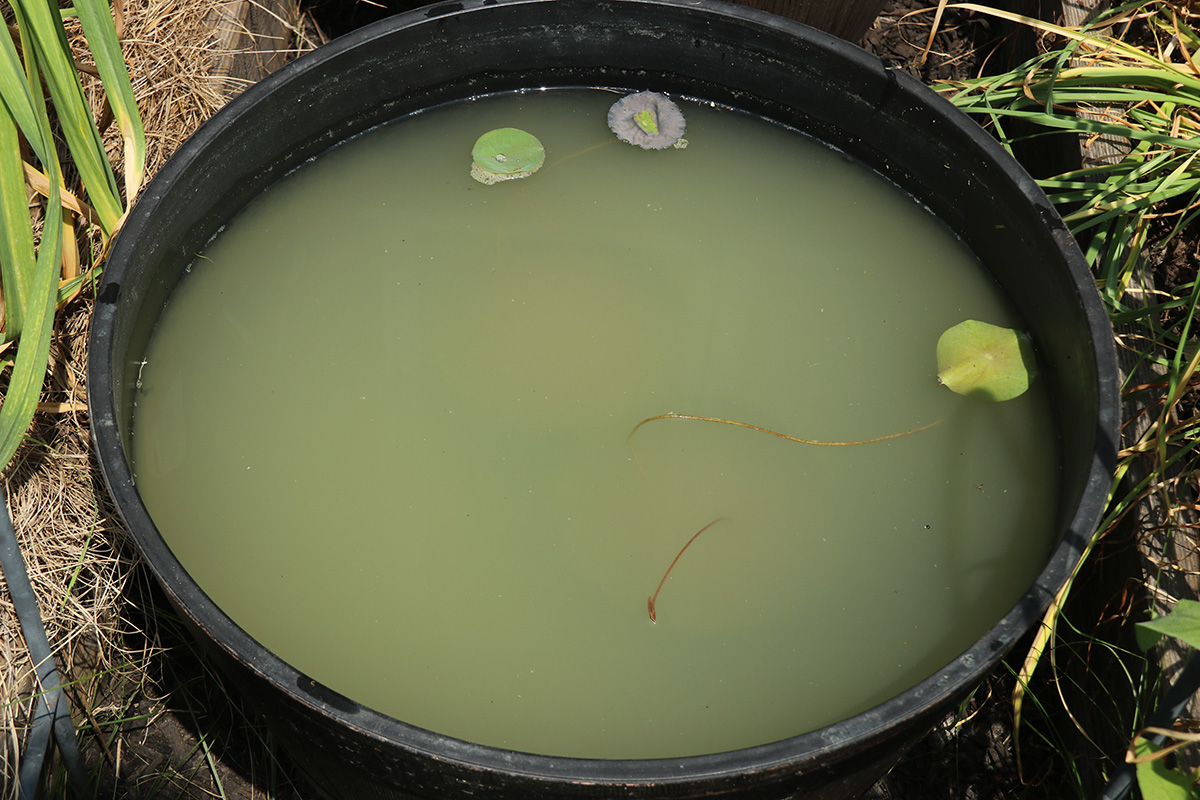 originally i was going to keep them in two barrels, just in case we get another raccoon attack. but with only 5 potted lotuses remaining, it was easier just to put them all in same barrel (shallow). i had to change out the water for both barrels as they were too muddy. i didn't bother waiting for the water to warm up, summer tap water is warm enough as is (upper 60's). so originally i had 2 lotuses, then reduced to 1 due to raccoons, then a total of 7 when i started a new batch, but now back down to just 5 lotuses.