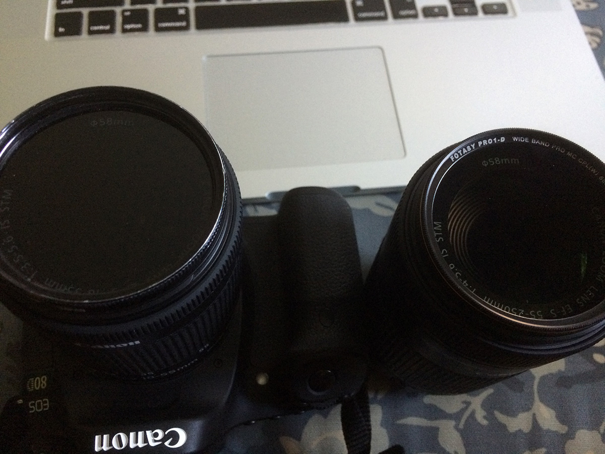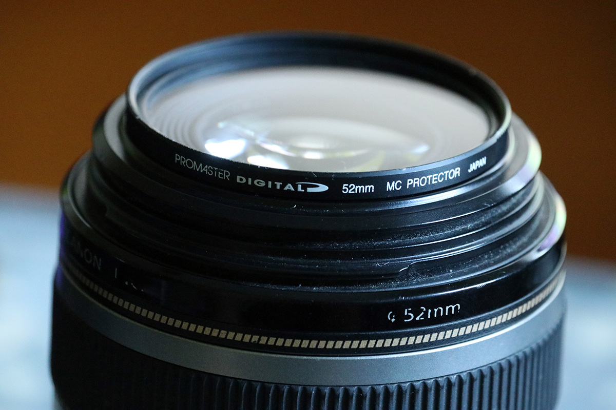 my 58mm fotasy super slim nano multi-coated 16-layer CPL filter arrived today ($9.68 ebay). somehow i was imagining it would be clear like an UV filter, but it glass was smoky, as i suppose all CPL filters are. whether it's everything as advertised i can't be sure, but compared to my old 58mm calumet CPL the difference was obvious, the fotasy is a lot clearer. i decided to put the CPL on my 18-55mm lens, and keep the ysdigi UV filter on the 55-250mm telephoto. while rummaging through my photo equipment box last night, i also found a bunch of other forgotten filters. i had a 52mm promaster multi-coated UV filter for my 60mm macro lens (usually i have a hoya CPL on the macro). it actually compares pretty well with the ysdigi UV, when they're both installed you don't even realize they're there.