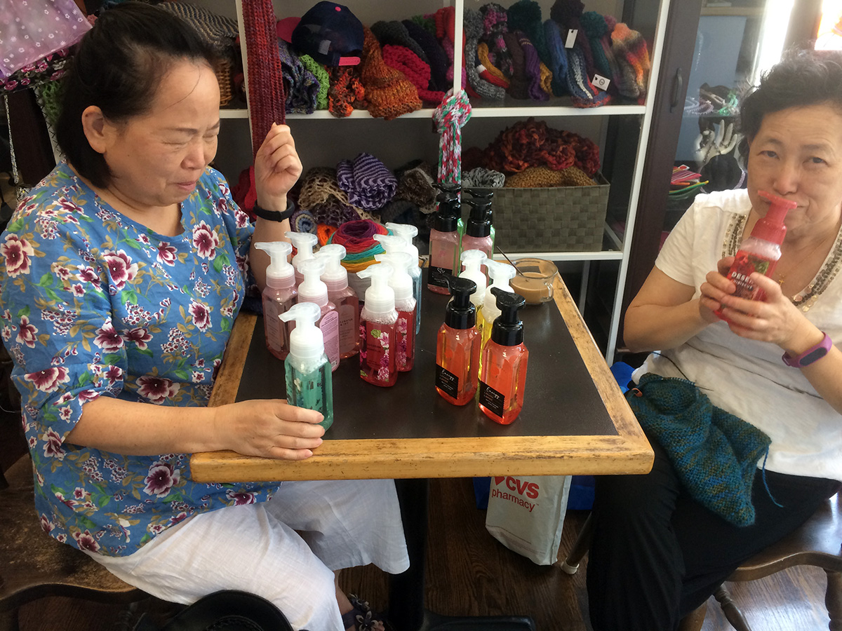 i rode to the cafe to drop off the hand soaps. my 2nd aunt was there as well, she picked a few for herself.