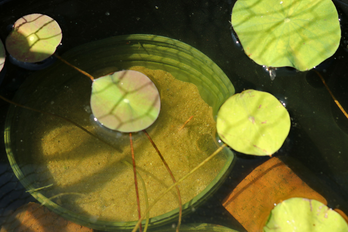 good news: that one lotus that had no coin leaf sprout (the one with the sun damaged leaf) finally managed to make one after all. but the weird thing is the sprout is coming out of the ground a few inches away from the seed, almost like it's an aerial leaf, which is impossible, since this is only coin leaf 3 (lotuses make 4 coin leaves before they start making aerial leaves). but it was buried too deep and got lost trying to break out of the sandy clay substrate. but now that it's out i no longer have to worry about that lotus. all the plants seem to be on track to varying degrees. the old first batch lotus is fast making its first aerial leaf, the stem 2-3 days from breaking the water surface. i've never observed an aerial leaf forming before so this is very exciting from a naturalist perspective. so far this 5th sprout doesn't seem particularly strong, but maybe the stem will harden as it grows.