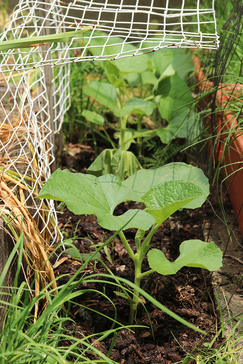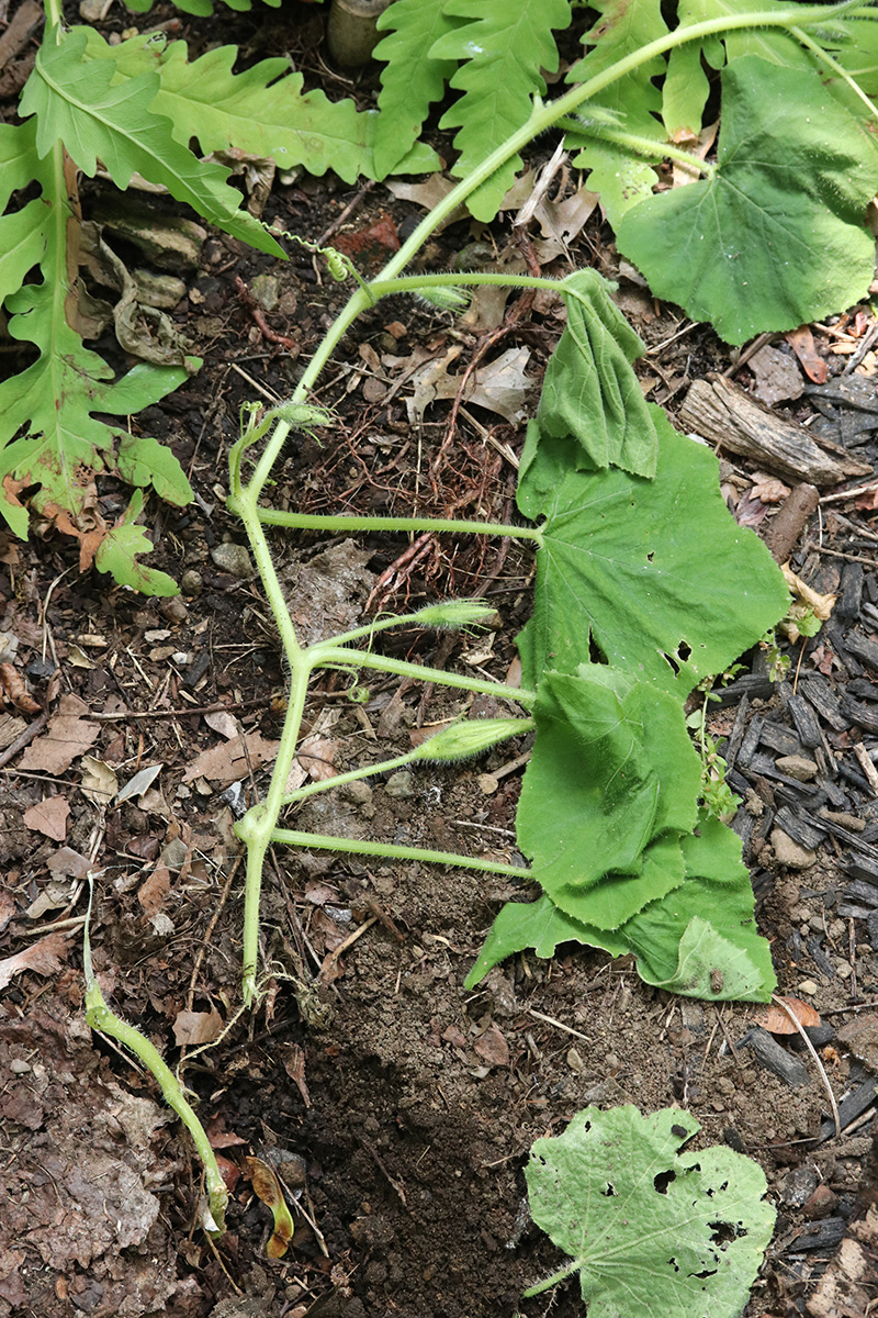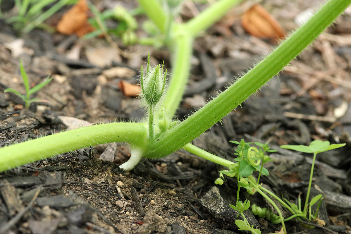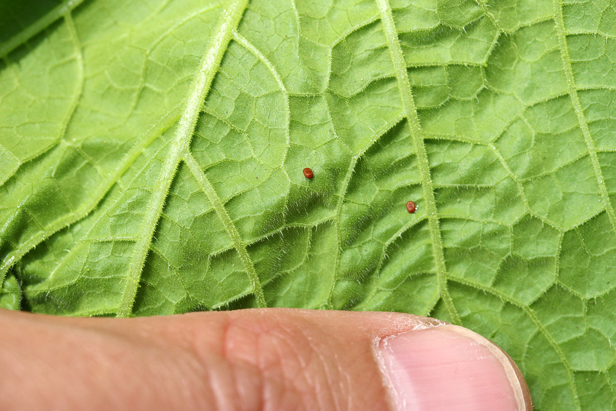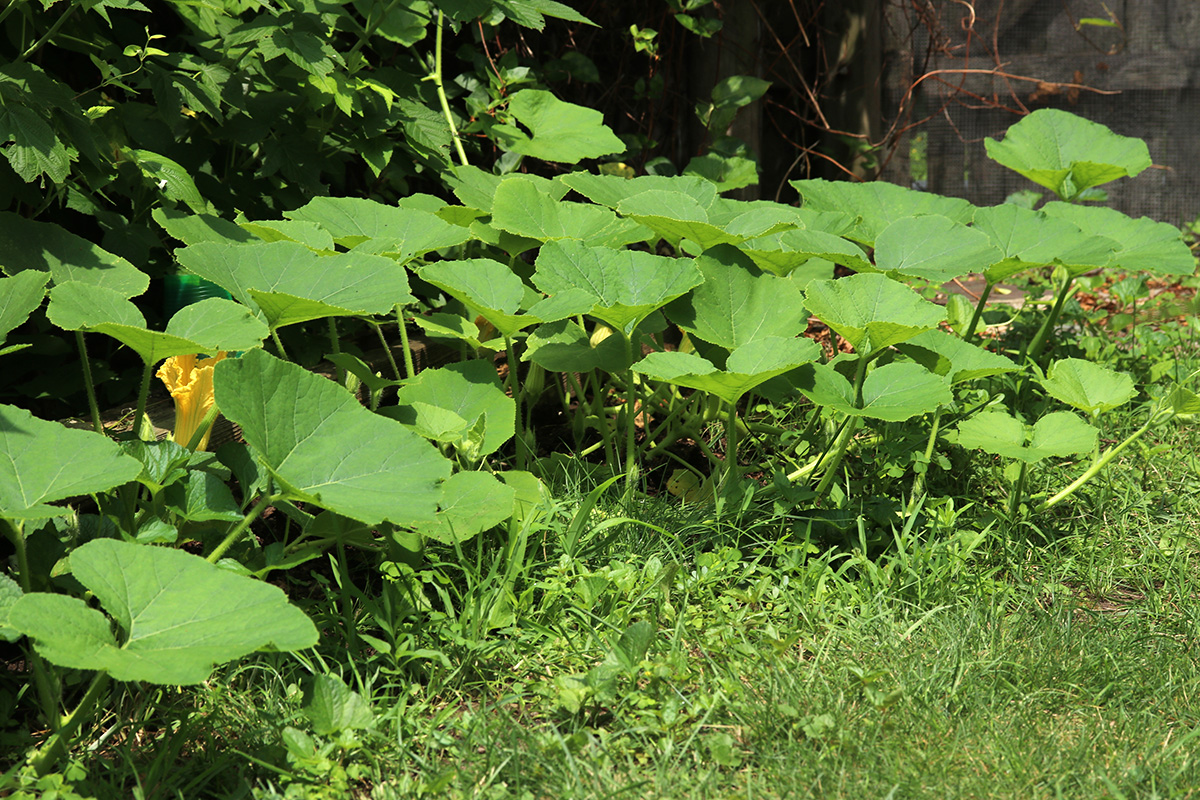 most of the buttercup squashes have started to rapidly grow under these hot and sunny conditions. the best are the ones by the western side of the yard, which were just kind of throwaways but beginning to become a squash patch. i checked them for squash vine borer (SVB) eggs but didn't see any. i did however find eggs on the squash plants in front of the evergreens, which i promptly picked off. i did another round of inspect, this time looking more carefully, and i found eggs on all the squash plants. i ended up picking off about 20 eggs. there's nothing else really i can do, other than to grow these squash under coverage but then pollinators can't get to the flowers. i noticed a long squash vine by the ornamental cherry has started to set roots. the squash plant by the willow tree - a very shady spot - has been killed by some critter; it was for the best as it wasn't getting a lot of sun, but still a shame, as more and more squash plants succumb to critter attacks. but a single squash vine - under ideal conditions - can produce close to a dozen squashes, like the case last year, all from a single plant.