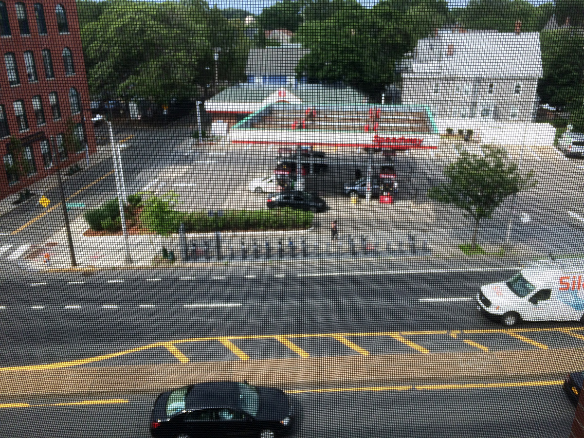 in the late afternoon i rode the bike to my 2nd aunt and uncle's new place on mass ave to help my aunt get onto the free xfinitywifi network with her ipad and phone while she waits for the cable company to show up on sunday. it's a cool place, 5th floor across from the gas station, nice view of mass ave with a bit of the boston skyline. recently renovated so everything looked new. the place doesn't have AC and i heard electricity is not included with the utilities (but heat and water is).