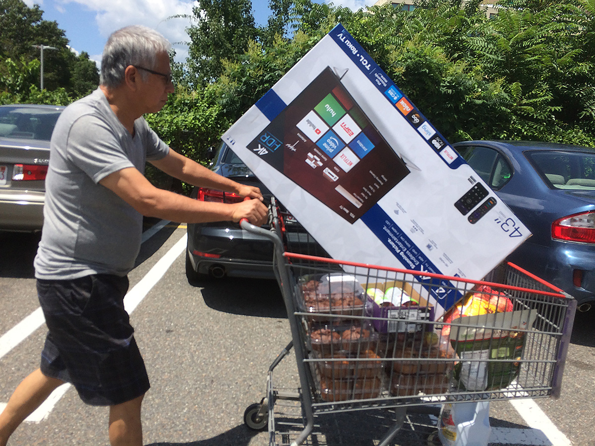 arriving at the cafe, my mother relieved my 2nd aunt of duty so she could take my father and i back to her apartment to install her new HDTV. while my father carried the HDTV, i carried the table, up to the 5th floor. fortunately there was an elevator.
