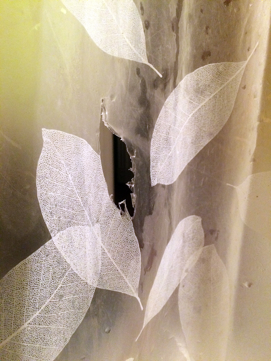 i noticed that my shower curtain had a large hole in it when i was taking a shower late last night. i have two curtains, it was the one near the business end of the tub (front), the one that receives the most splashes. how it happened i don't know, but i immediately wanted to blame my roommate, even though i can't think of how she could manage to rip it. maybe it was something i did, and only now finally noticing it, although that's unlikely since i'm constantly washing soap scum and mildew from them. i stopped washing, switched the curtains (back to front, front to back), then continued.