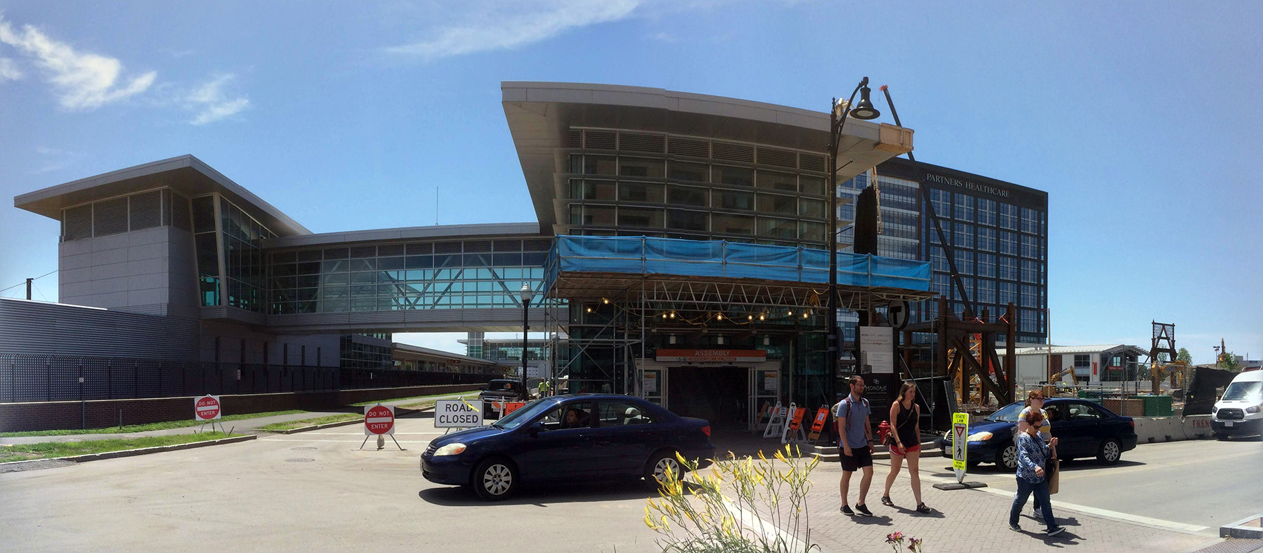 my father and i went to check out the MBTA station before going into columbia. we were behind two mothers pushing baby strollers. i thought they were also heading to the T but turns out they were residents, swiping their card to enter a fancy apartment building. my father wasn't interested in getting any new clothes so we left columbia, walking down the length of the street towards mystic river to check out what other stores and restaurants they had to offer. as there was major ongoing construction just next door, a large percentage of the shoppers there were also construction guys on their lunch break.
