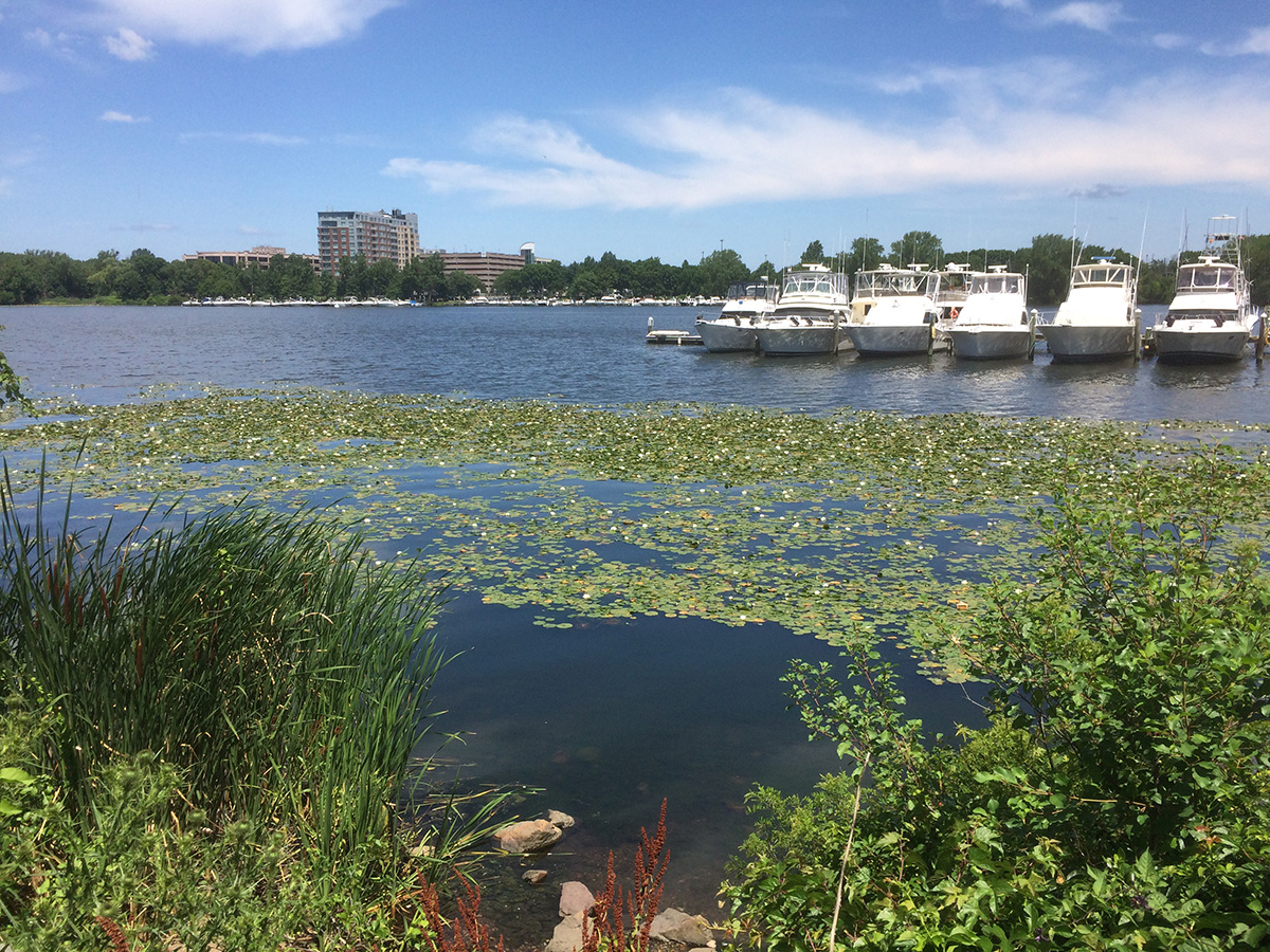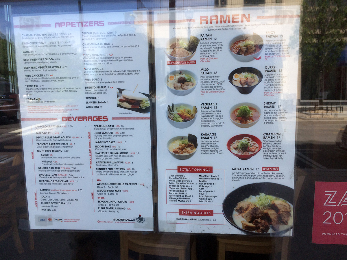 down by mystic river there were large patches of water lilies floating on the surface. as it was already noontime, the flowers were closed. instead of walking back on the same road we took, we took a path along the river and by the subway/train tracks. that's when we came across a ramen shop hidden one of the side streets.