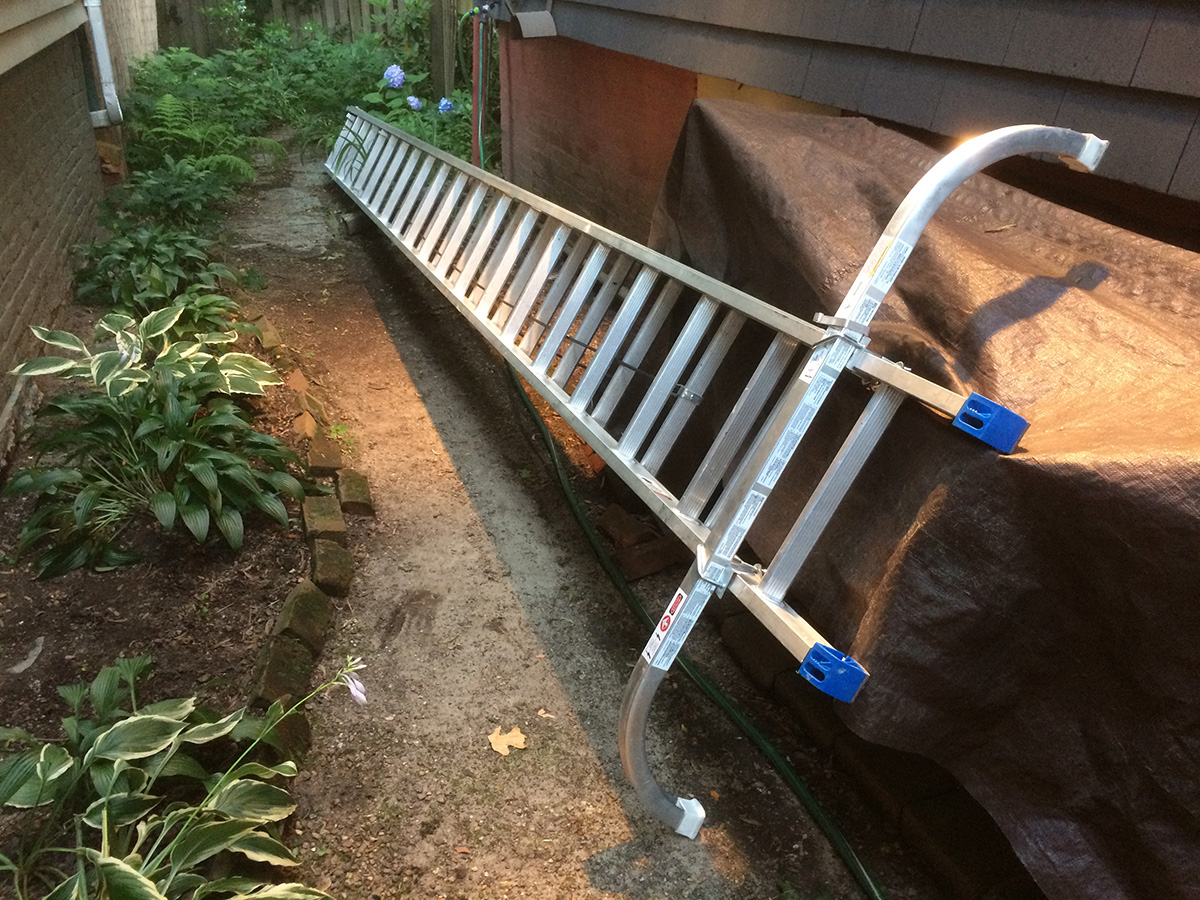 * all day, hear the rattle of ladders as the contractors begin reattaching the gutters (using screws instead of nails)