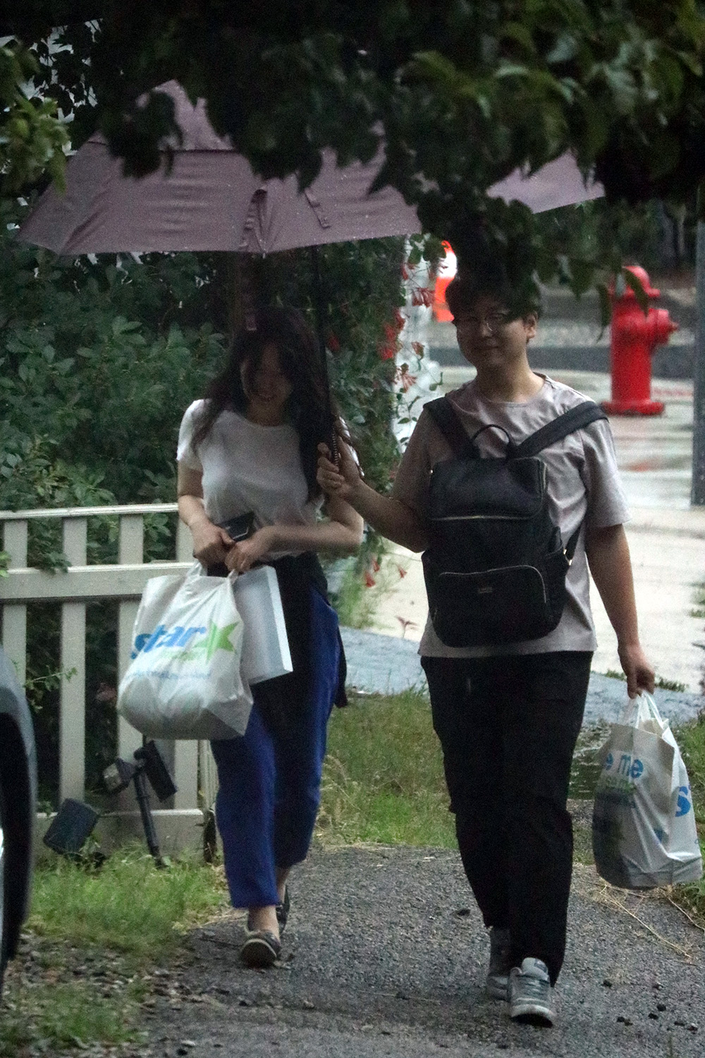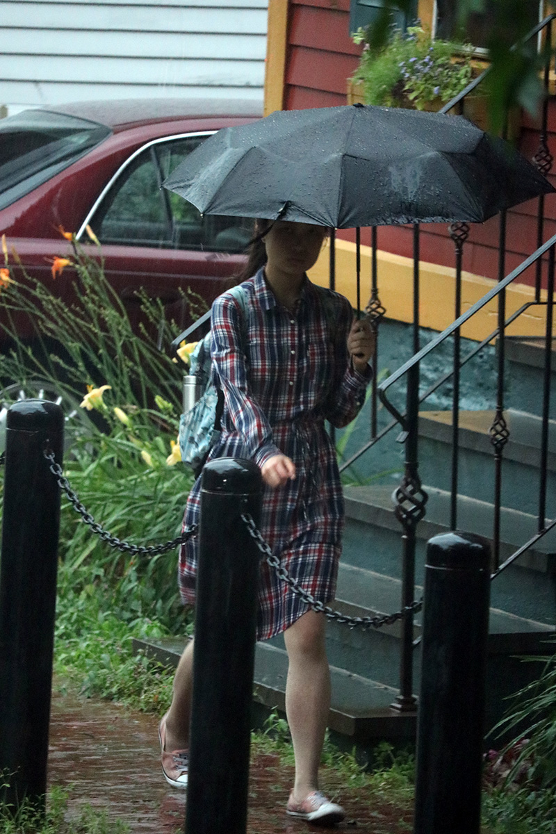 i thought they'd left so i went go to use the bathroom. minutes later joseph called me. he said the check i gave him was glued to the envelope. i went out to write him a new check, and that's when it realized it was already raining.