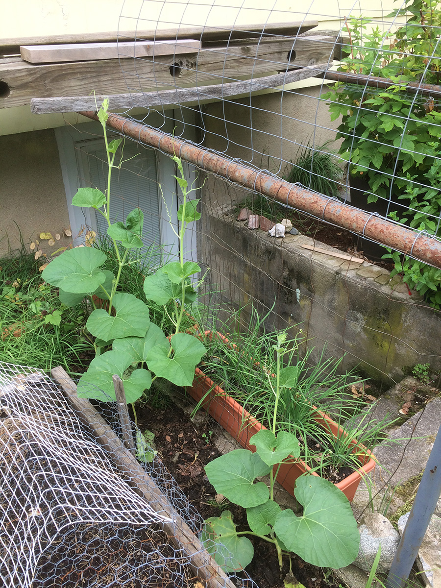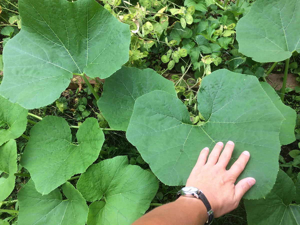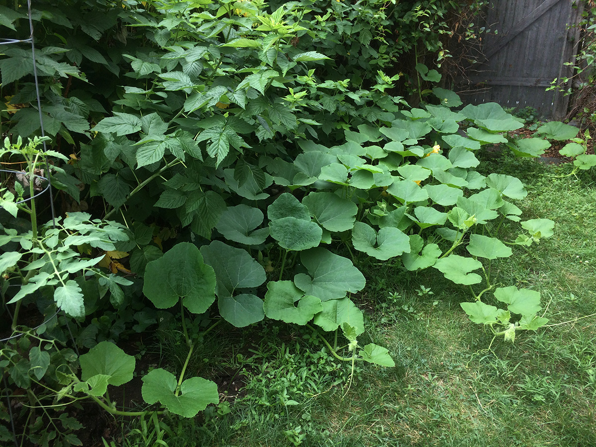 one thing that only i seem to be able to do is pick off squash vine borer eggs from cucurbit plants: buttercup squash, zucchini, bottle gourd, and cucumbers. it's vitality important because if just one egg is allowed to hatch and crawl inside the hollow stem, it could very easily kill the entire plant. i found a few today, but i still have to keep vigilante. fortunately it takes 1-2 weeks for the eggs to hatch, so i typically have some time to find them.