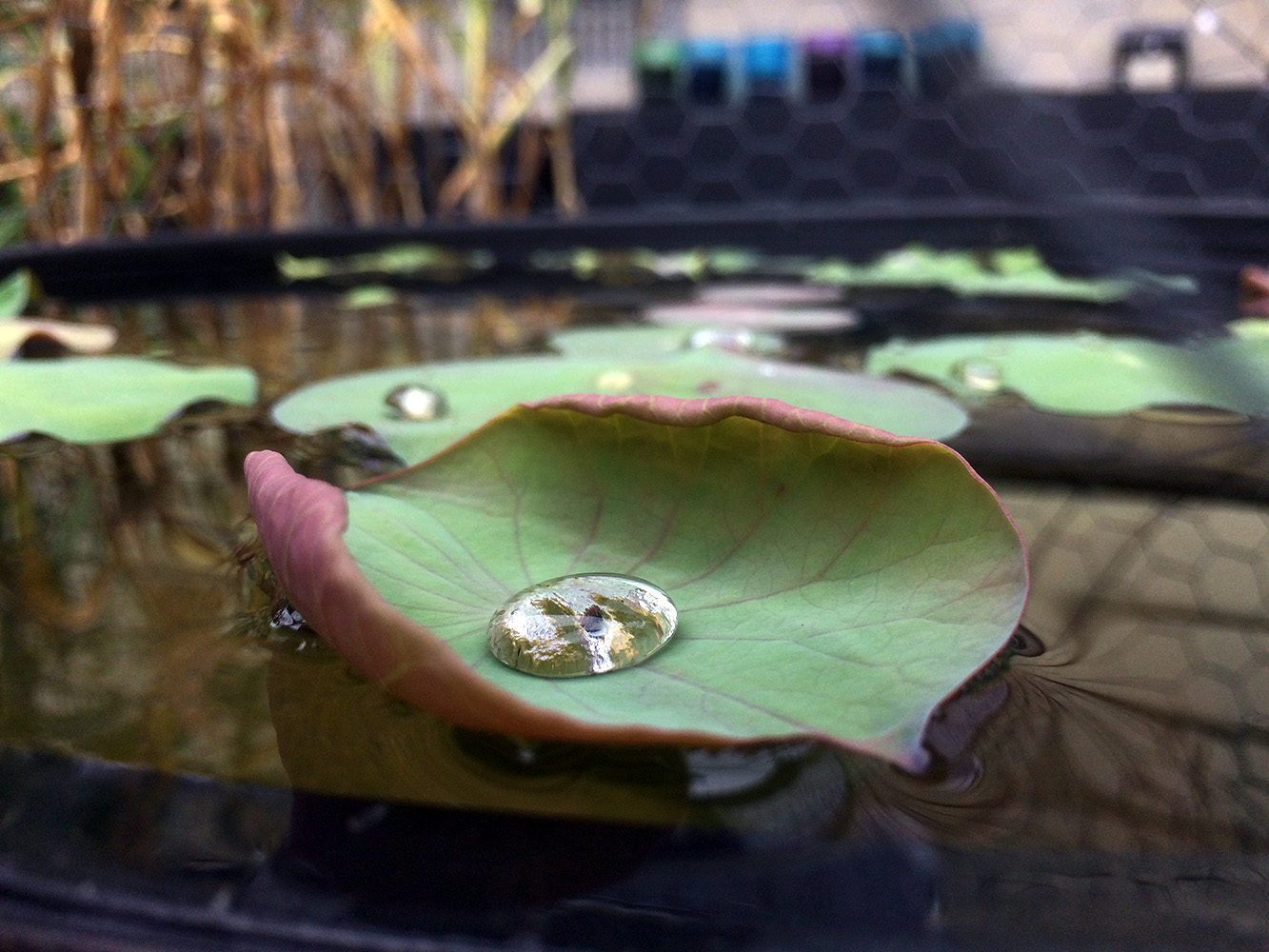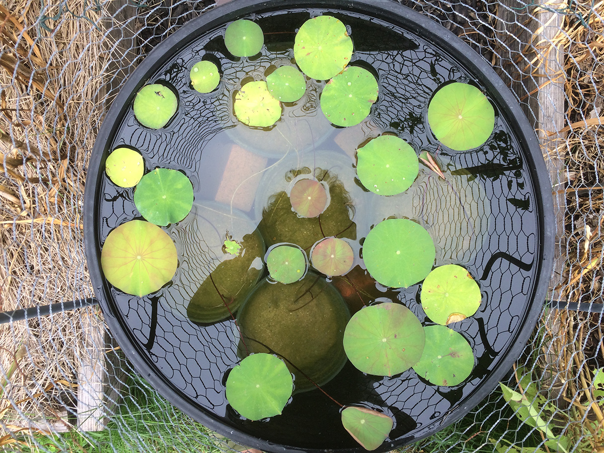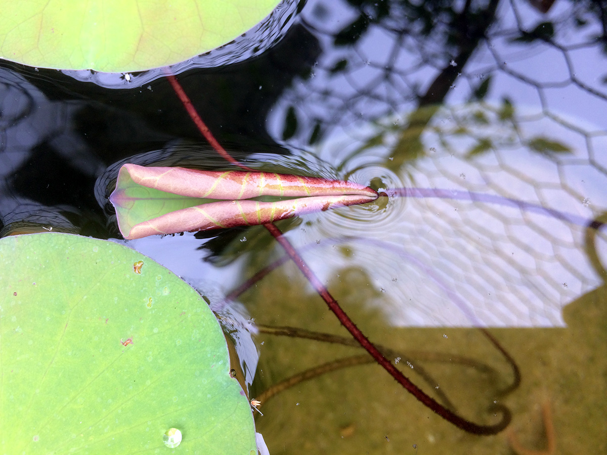 so far still no aerial leaves. a few possible candidates from earlier in the week turned out to be large floating coin leaves. nothing to do but keep on waiting. there are currently 22 lotus leaves, not counting the 2 that died from the raccoon attack.