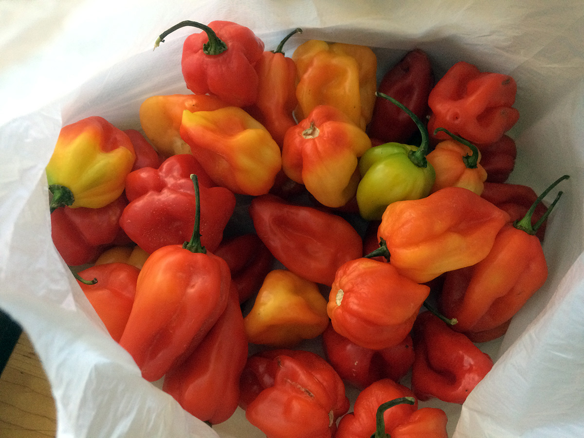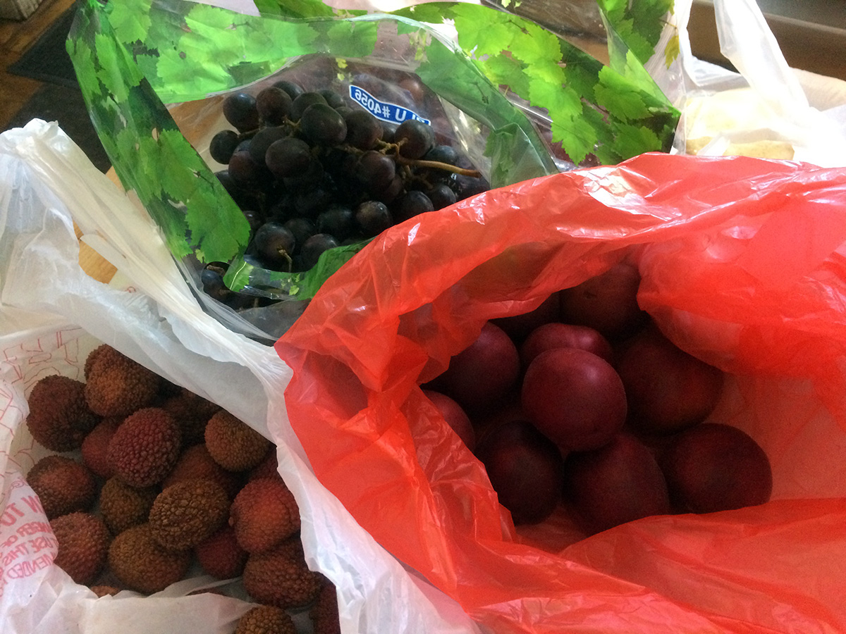 i left the house at 10:20am, heading down to haymarket. temperature was still in the 70's, but under the glare of the beating sun it felt a lot warmer. it was just a matter of time before it'd get hot. that early on a friday, a few vendors were still setting up their stalls. nothing too interesting, but there were definitely cherries selling at $2/lbs. there also seems to be more traditionally asian fruits, like lychees and rambutans. i ended up leaving with: 1 lbs. of habenero peppers ($2, going to make another batch of hot sauce), 2 lbs. of lychees ($4), 2 lbs. of bing cherries ($4), 10 pluots ($1), sleeve of garlic ($1), 2 bunches of scallions ($1), 2 persimmons ($1), 2 bags of grapes ($1 each).