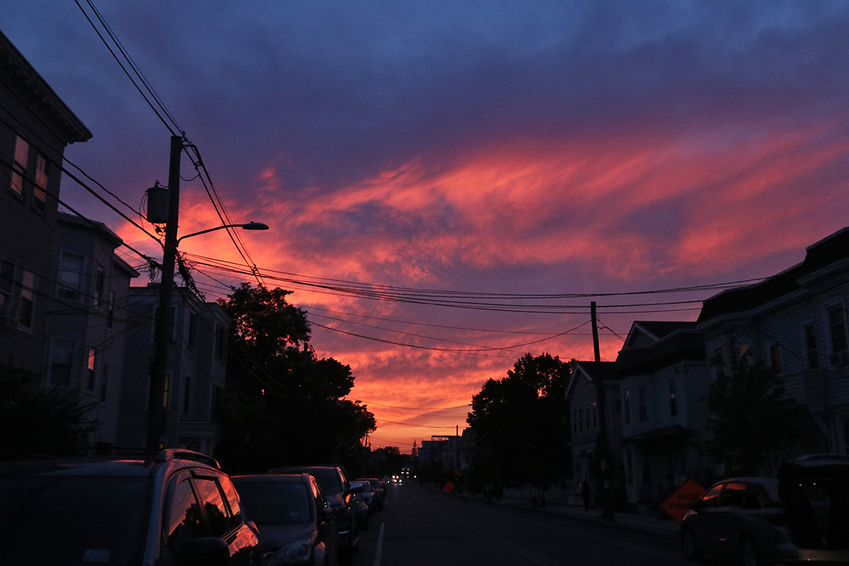 around sunset i could see the explosion of colors in the sky through the blinds. i went outside with my wide angle lens to snap some photos. even in the evening, the weather outside was still sweltering, humid and in the upper 80's.