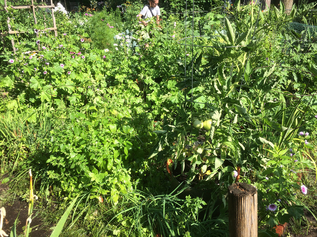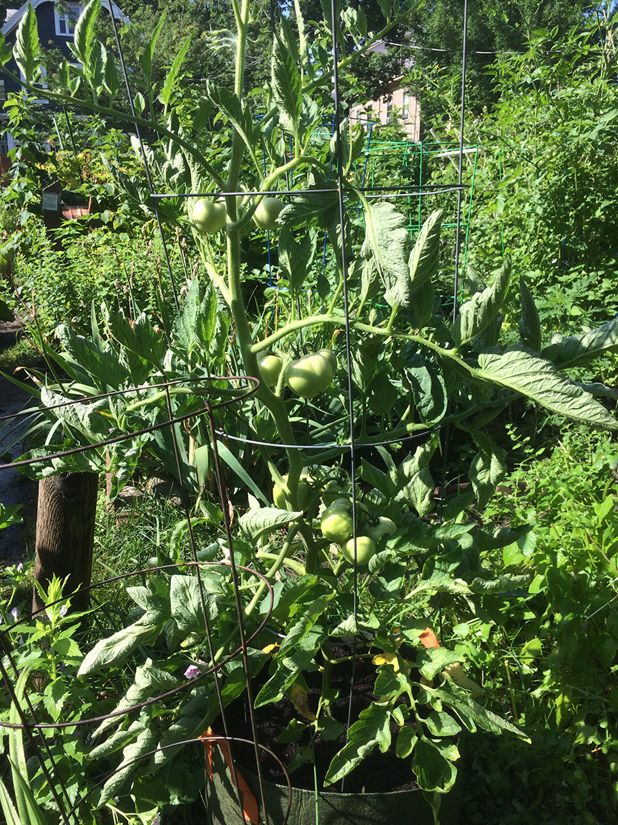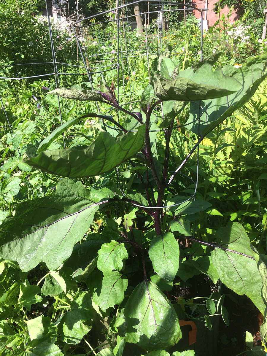 i went down to the community garden at 8am to do some watering and weeding. i pruned off much of the lemon balm just to give more sunlight to the row of peppers i've planted behind it. i also pulled up a bunch of striped mallows, but i was too sentimental to simply throw them away so i wrapped up the roots in a wet paper towel and put them in a large ziploc bag. while i was there i met david, a gardener with a plot behind the other david. he had a lot going in his garden, but from the fact that he confused eggplant with arugula and cucumbers with beans, i could tell he was still a gardening amateur. i also met andrea, who had the plot diagonal from mine (formerly lynn's plot); she was less friendly but we eventually did exchange pleasantries. she said she'd neglected her garden and was here to do some clean up. i finally left an hour later, the weather so hot and humid i was already soaked in sweat, hair stuck to my forehead, legs splattered with dirt.