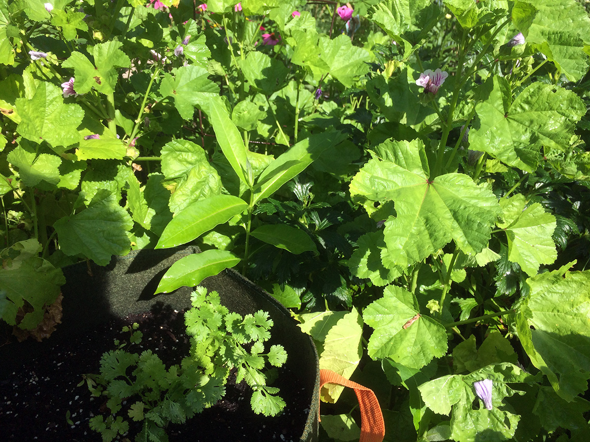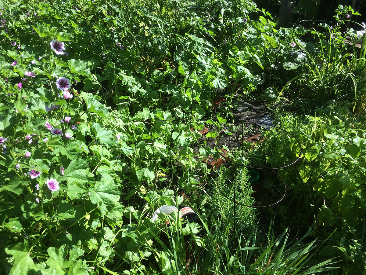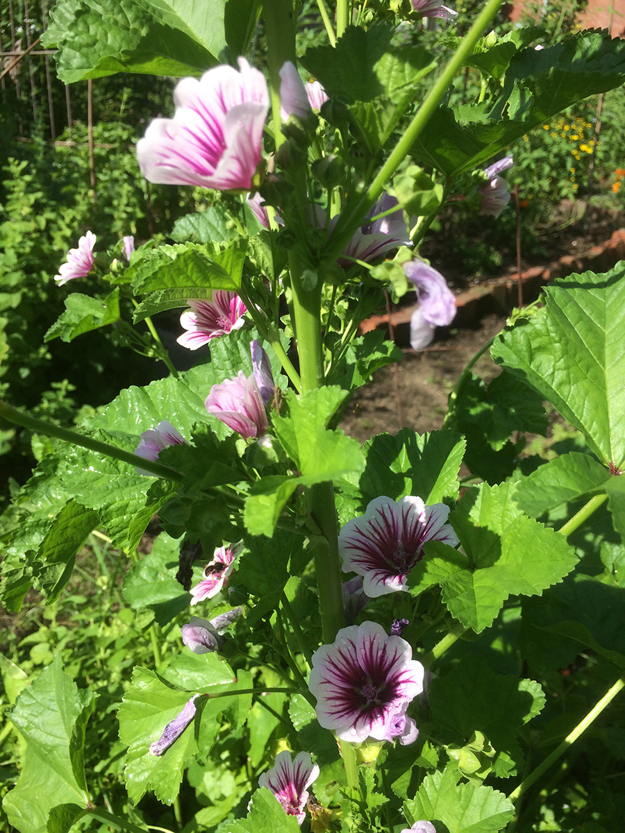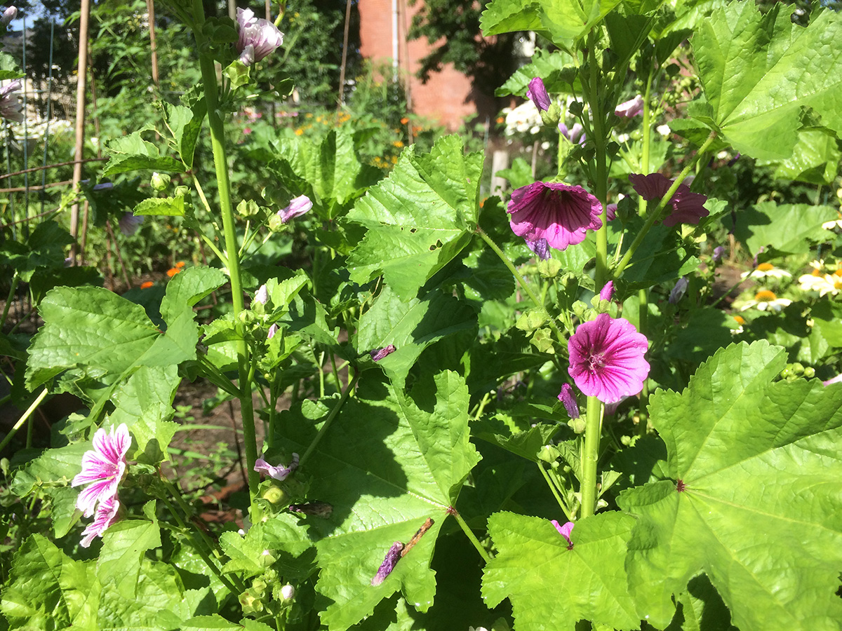 i went down to the community garden at 8am to do some watering and weeding. i pruned off much of the lemon balm just to give more sunlight to the row of peppers i've planted behind it. i also pulled up a bunch of striped mallows, but i was too sentimental to simply throw them away so i wrapped up the roots in a wet paper towel and put them in a large ziploc bag. while i was there i met david, a gardener with a plot behind the other david. he had a lot going in his garden, but from the fact that he confused eggplant with arugula and cucumbers with beans, i could tell he was still a gardening amateur. i also met andrea, who had the plot diagonal from mine (formerly lynn's plot); she was less friendly but we eventually did exchange pleasantries. she said she'd neglected her garden and was here to do some clean up. i finally left an hour later, the weather so hot and humid i was already soaked in sweat, hair stuck to my forehead, legs splattered with dirt.