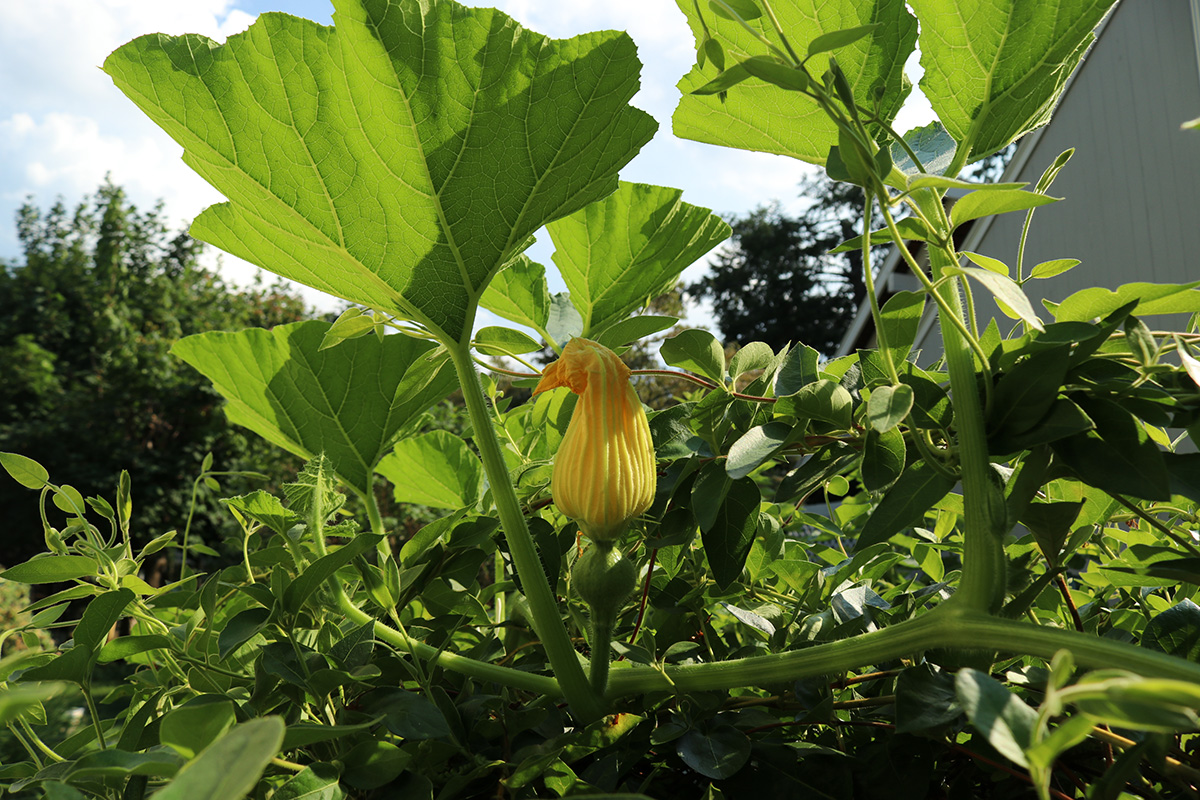 something has been eating some of the squash flowers. we don't think it's the woodchuck because it would've defoliate the whole plant, leaves and all, not just the flowers. we think maybe it's rabbits but not sure how they're getting into the backyard.