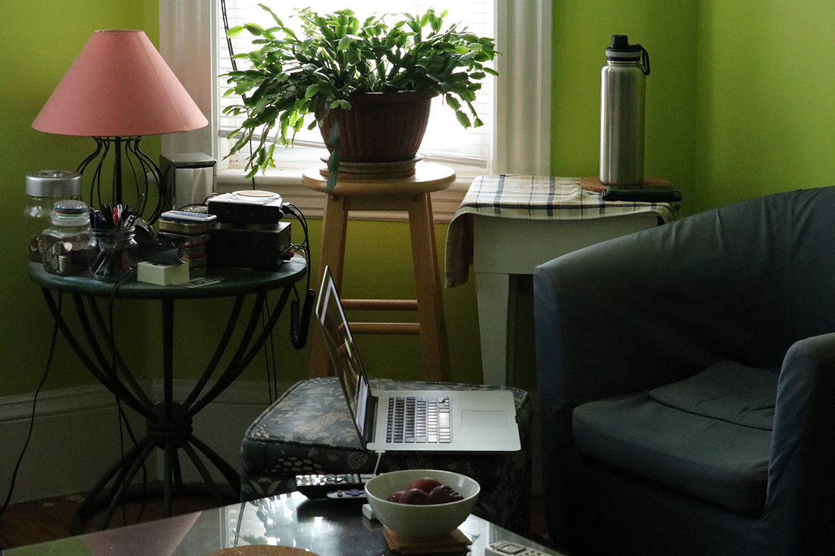 after dinner annie and her mother retreated to the guest bedroom. they closed the door, even though it must've been in the upper 80's, but they did have the fan running, which only circulated the trapped hot air.
