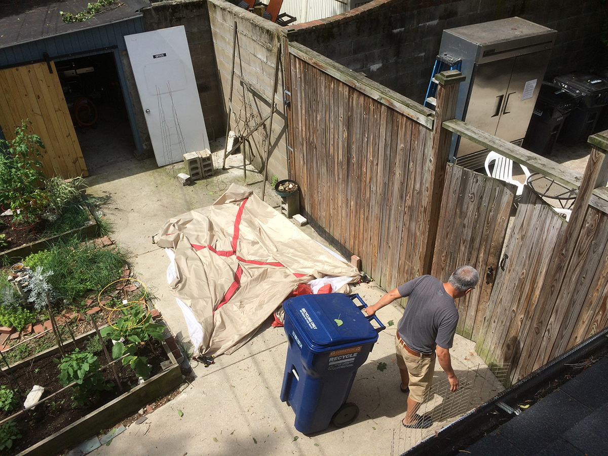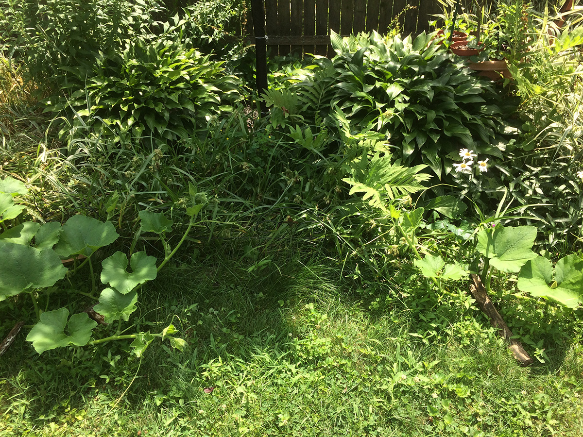 the fencing by the southwestern corner of the yard was breached again, despite my best effort to block it off with logs. whatever came in was strong enough to bend upwards the chicken wires. i reworked the barrier, this time blocking the hole with a large rock.