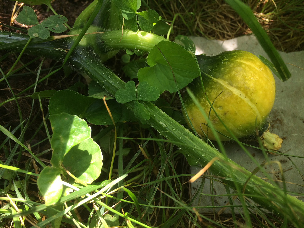 inspecting the buttercup squash plants, i picked off a few SVB eggs but i also noticed a few times that might already have been infected. i will inject them with thuricide over the weekend. i originally bought the thuricide back in july 2012, it's only supposed to have a shelf-life of 3-5 years, but i'm hoping it's still effective. i also noticed our one solo maturing squash seemed to be dying, it as turned yellow instead of remaining green. i'm not too sad about it as more squashes are developing, but it's never a good thing to see fruits withering on the vine.