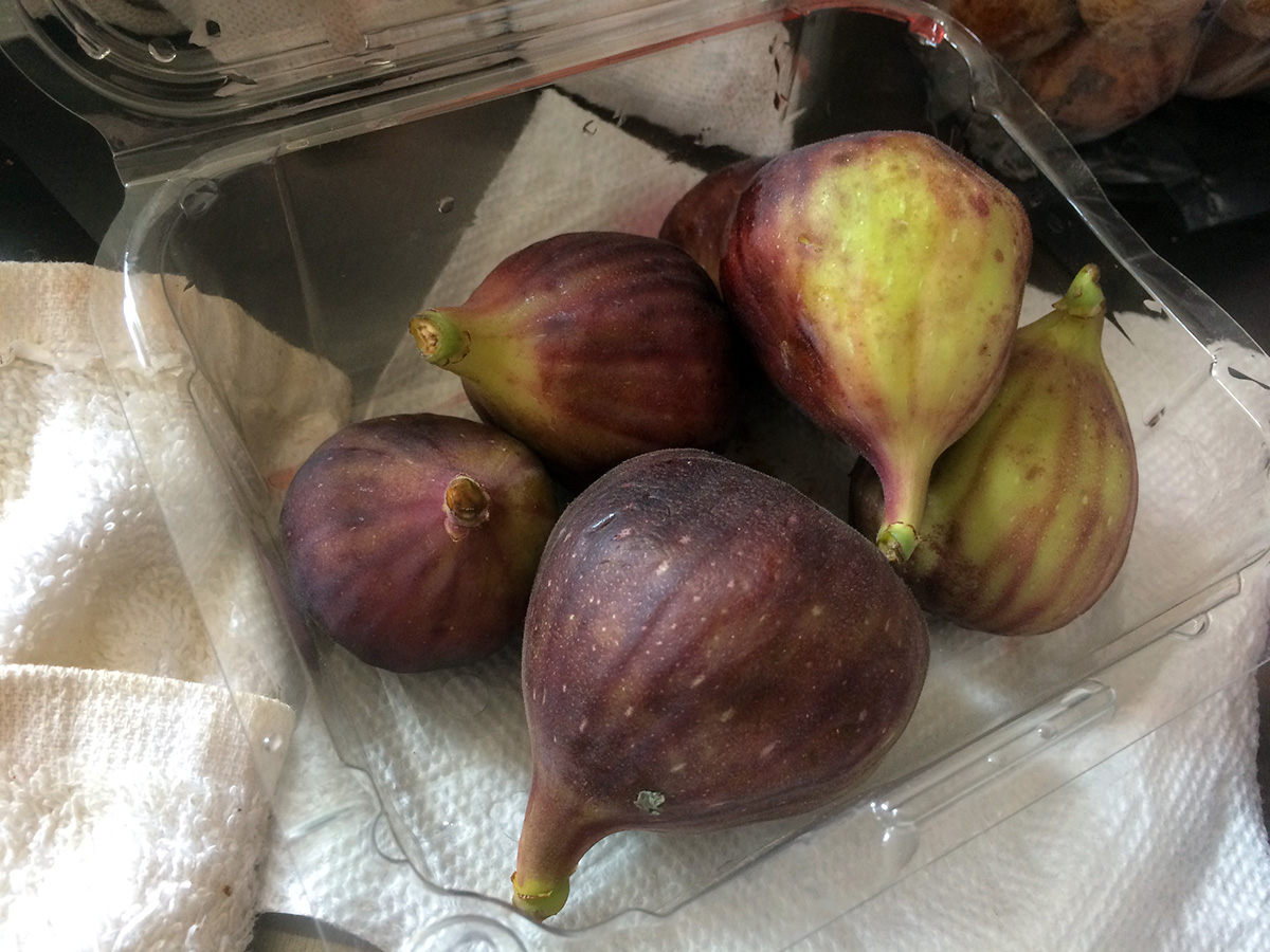 riding across the longfellow, i stopped by my house briefly to pick up a package of italian sausage and my japanese eggplant. i bumped into leon who was walking towards star market. they rented a car this weekend, heading out to the cape on a day trip to hunt for crabs and look for sharks. i then went to the cafe to unload my haymarket haul. i also bought a box of figs ($2), 2 christmas melons ($3), and 3 sleeves of garlic ($2).