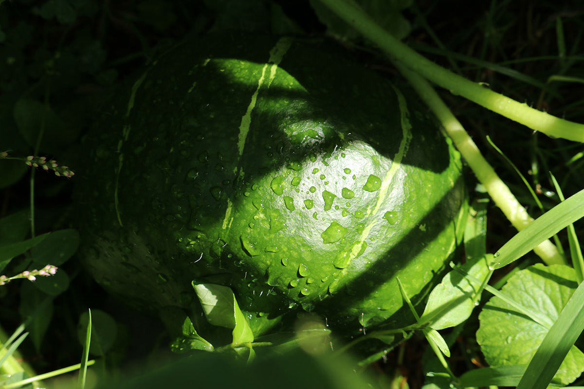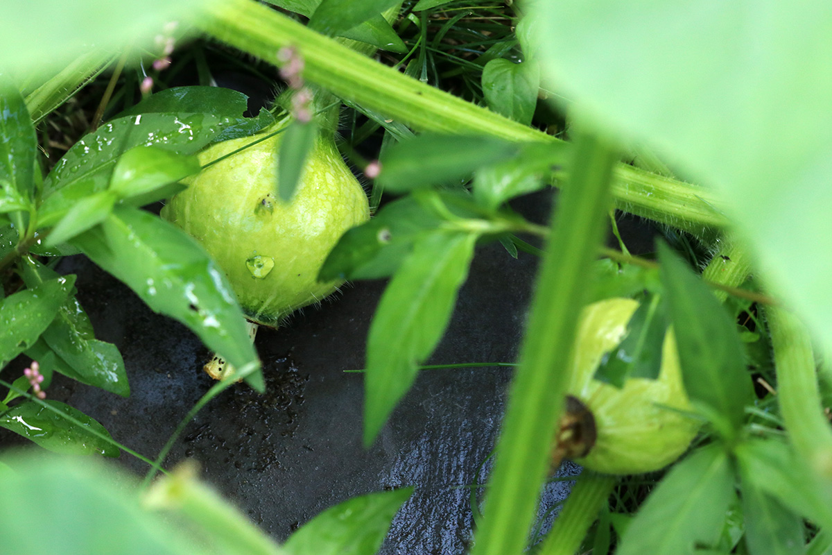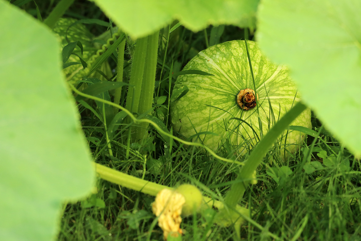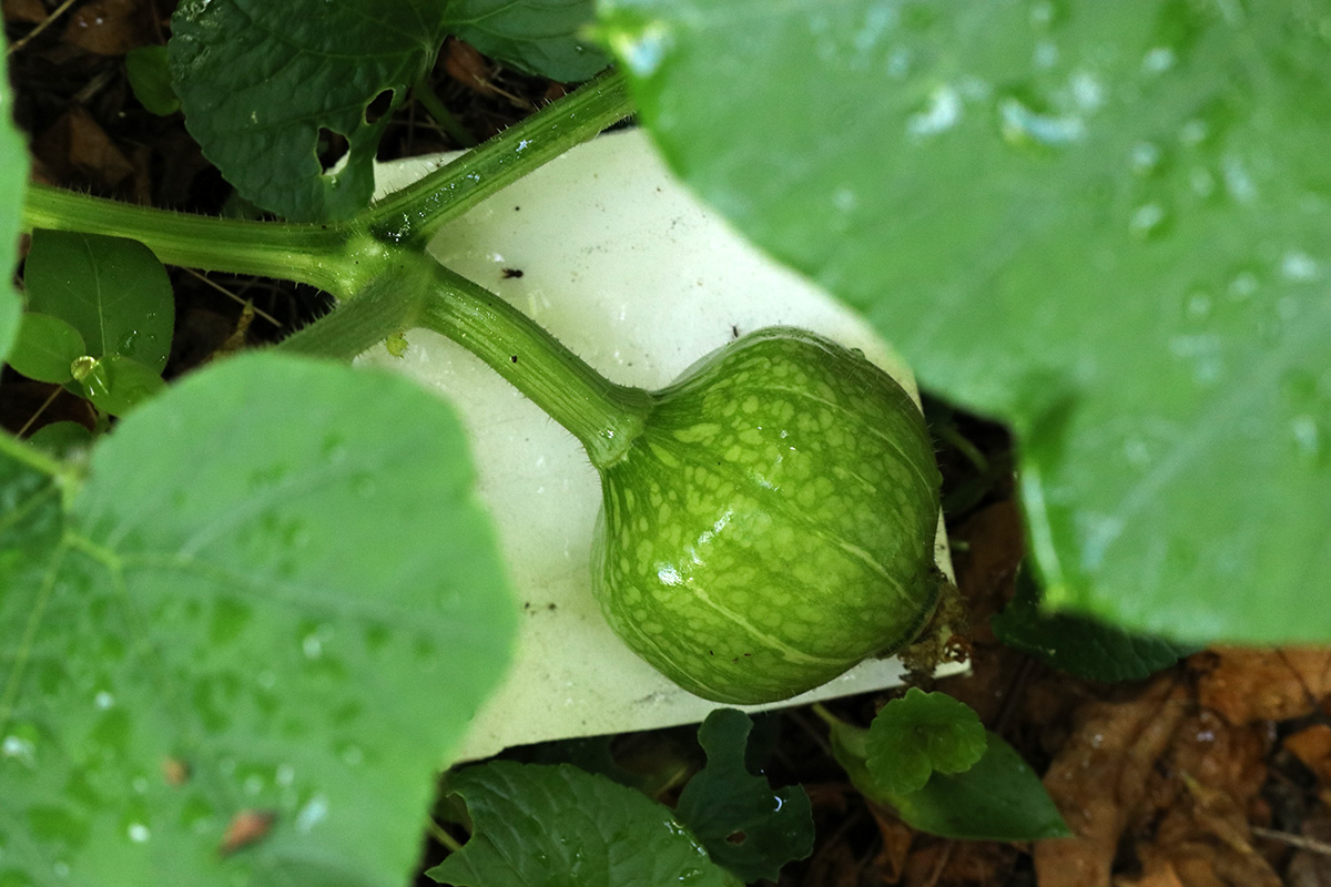 as for those pale squashes, i was worried that they just might stay pale, but i checked through my records, and all buttercup squashes develop that way, eventually turning deep green as they mature.