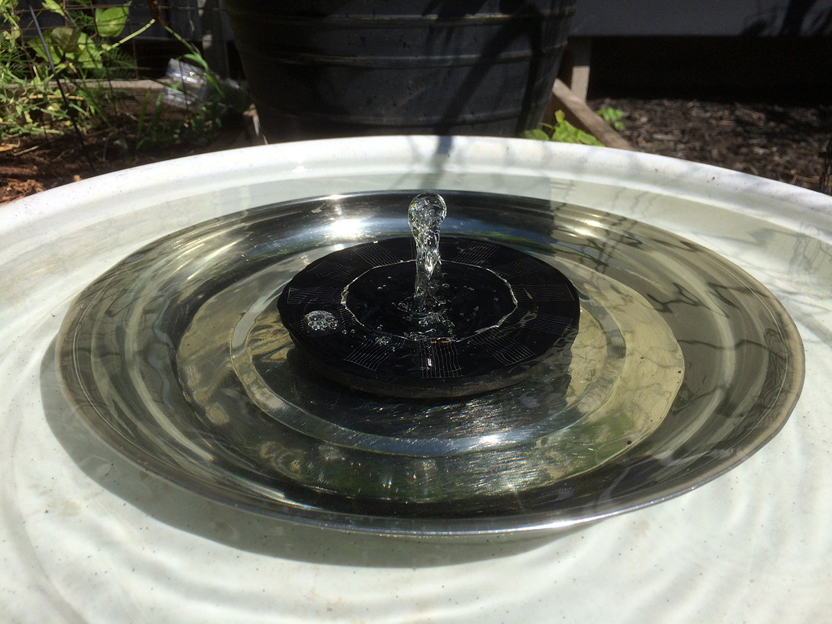 i moved the bird bath to the DIY fire pit since it got more sun exposure. i hadn't seen any birds visiting but i knew they were there from evidence of bird droppings and feathers floating in the water.