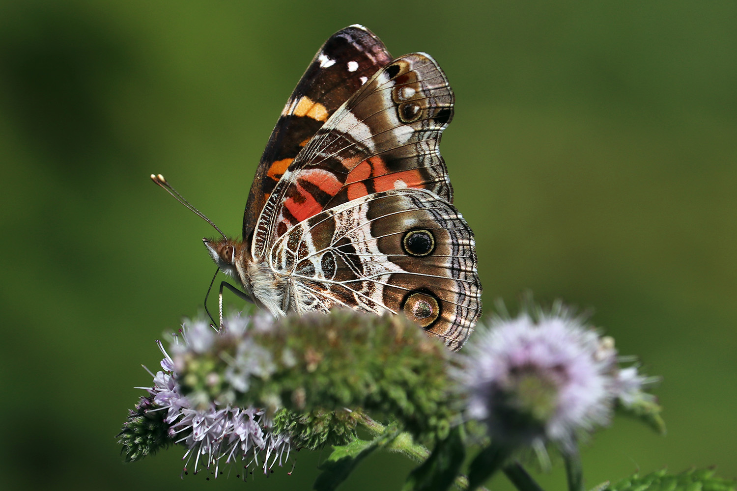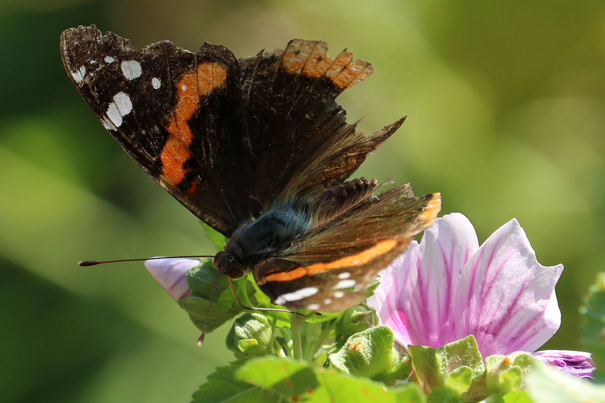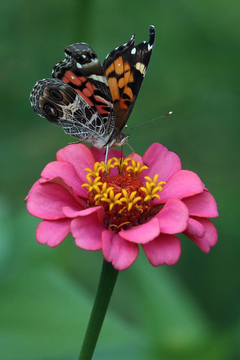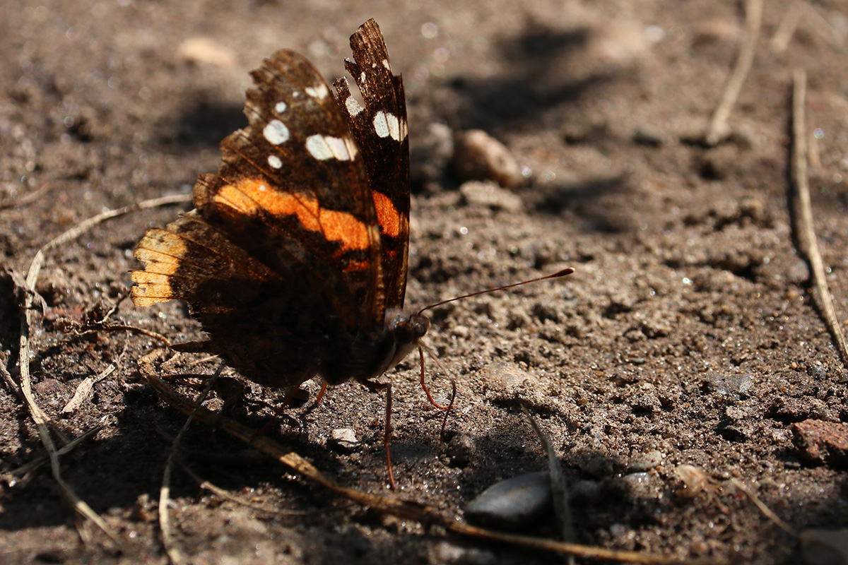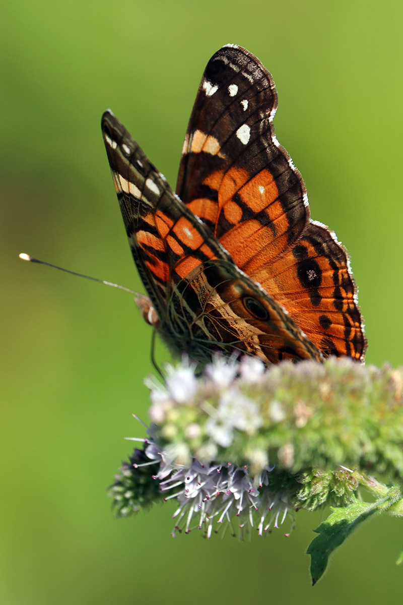 in the afternoon i walked down to the community garden to do some watering. wayne was there, he never seems to remember me even though he's called me on several occasions in the middle of the night asking if i could water his plot for him while he's away. i secretly covet his plot: should the day arrive and he ends up giving his own garden, i'm going to try to get it through the lottery. anyway, while i was there, i saw a few butterflies: red admirals and american ladies.