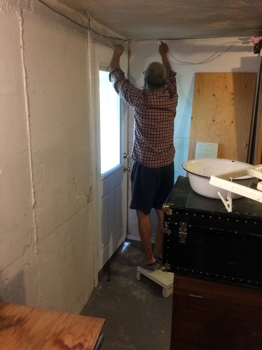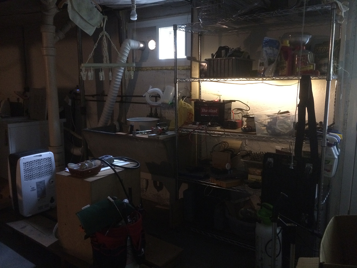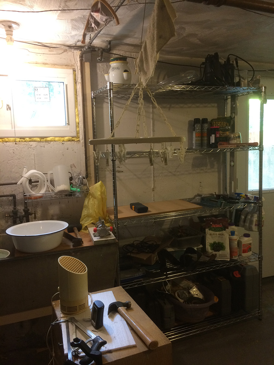 it was a little chilly and overcast outside. i didn't even survey the backyard, which is something i've always done, not even to check the perimeters or water the plants. i did take a quick glance at the lotuses, no new aerial leaves. instead i spent most of the day indoors, first putting together a 5 tier wire shelf by the basement entrance (for garden tools and supplies, as well as a place for my father's solar-charged marine battery), then cleaning the sunroom and moving everything down into the basement, including another wire shelf.