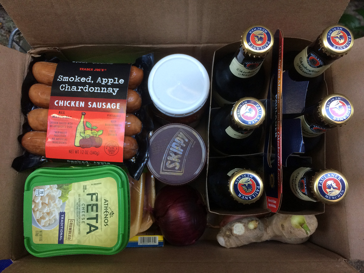 i continued on my way to market basket, where i realized i left my grocery list at home. this happens a lot, like half of the time i make a list i end up forgetting to bring it. but i remembered most of it, feta cheese, some italian sausages, a case of seltzer.
