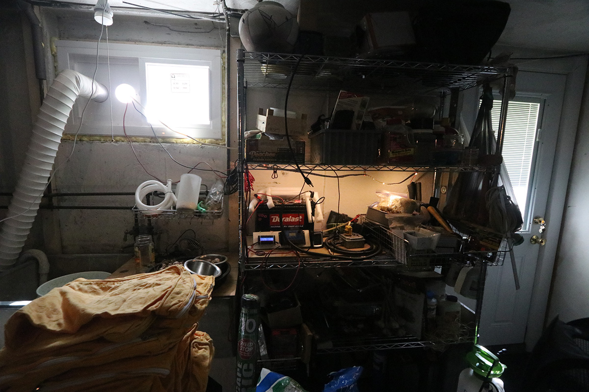 i noticed 2 of the fairy light jars have water in them; apparently i didn't close them tight enough to make them completely waterproof. i cut all the spent garlic chive flowers to prevent them from making any more. i went to the basement to inspect our grow house, before the addition of the 1000W LED grow light we bought yesterday (arriving tomorrow). i returned home by 3pm. i thought it was going to be a cool day but it was actually pleasantly warm, temperature in the upper 70's with low humidity. although it was sunny for the first half of the day, by the afternoon large patches of clouds started to fill in the sky, looking like it might rain (it never did).