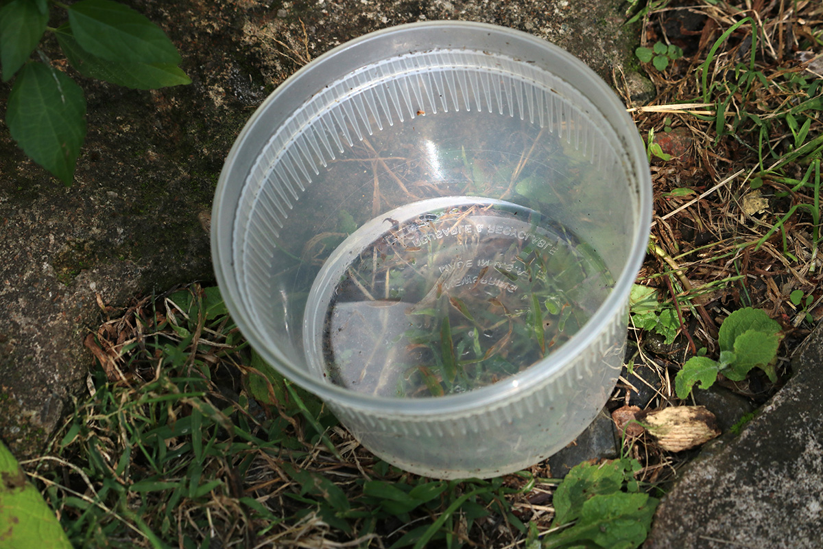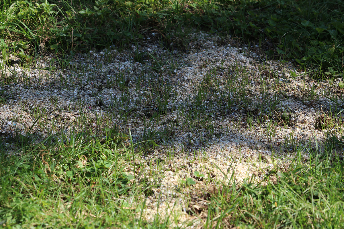 i wanted to see how full the rain barrels were after last night's heavy rainstorm. i was surprised to discover that the water level gauge was only halfway up. apparently it didn't rain quite as heavily in belmont as it did in cambridge. there were some open containers lying around, and there was about quarter inch of rain water at best, not quite enough to fill all our 6 barrels. i used the rain water to water the grass patches which have finally started to germinate.