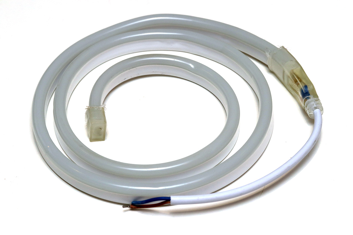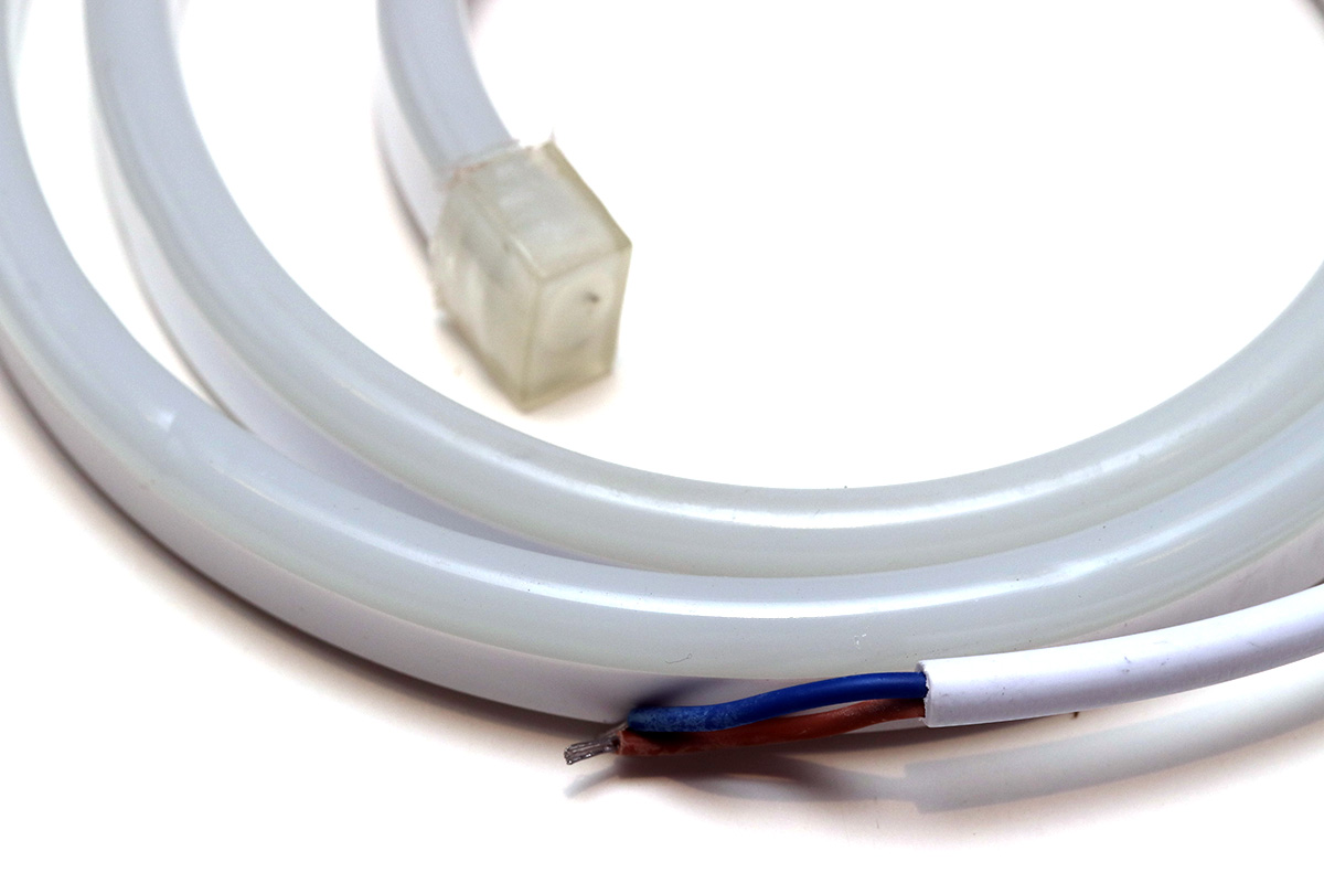 my 1m LED neon strip light came today ($1.28). i don't have a 12v power source in the house so i couldn't test it. it's built so sturdy, i don't know if i could ever cut it into smaller segments without damaging the electronics inside since i can't see through the covering.