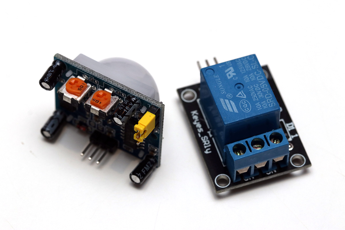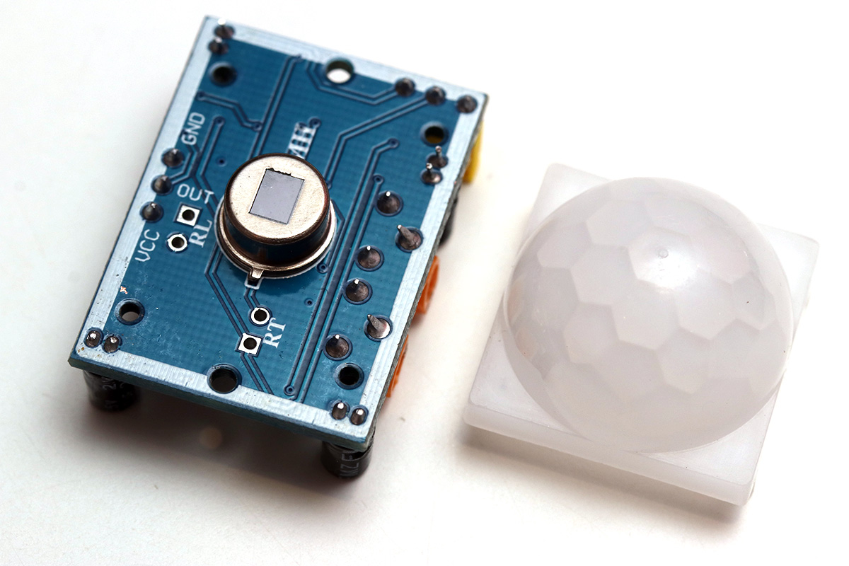 my HC-SR501 pyroelectric motion sensors (2) arrived in the mail today. currently their default setting is for motion detection only, but a photoresistor can be attached to make it trigger only when it's dark (for night motion sensing). paired with a relay switch, i can use them to make motion sensing lights.