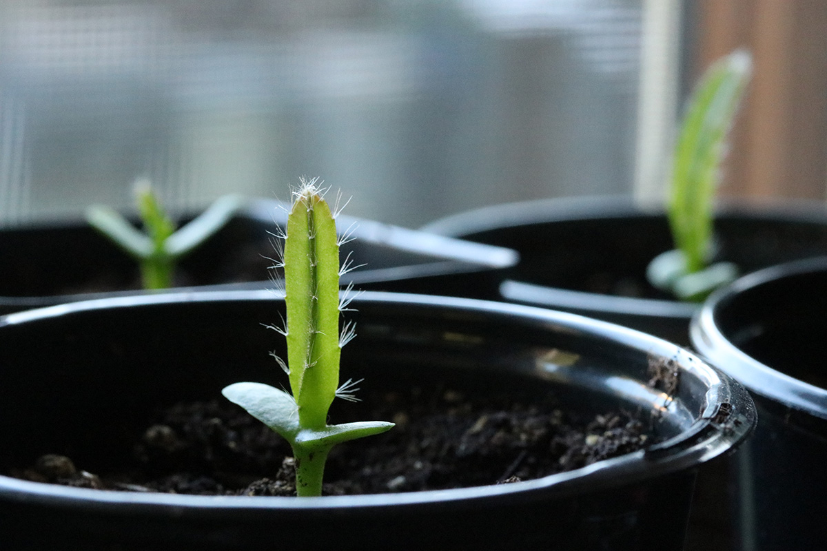 i noticed the dragon fruit cactus seedlings my father's been growing all have yellow tips. maybe this is natural, or maybe it indicates incompatible conditions, like maybe watering too much, or not enough sunlight.