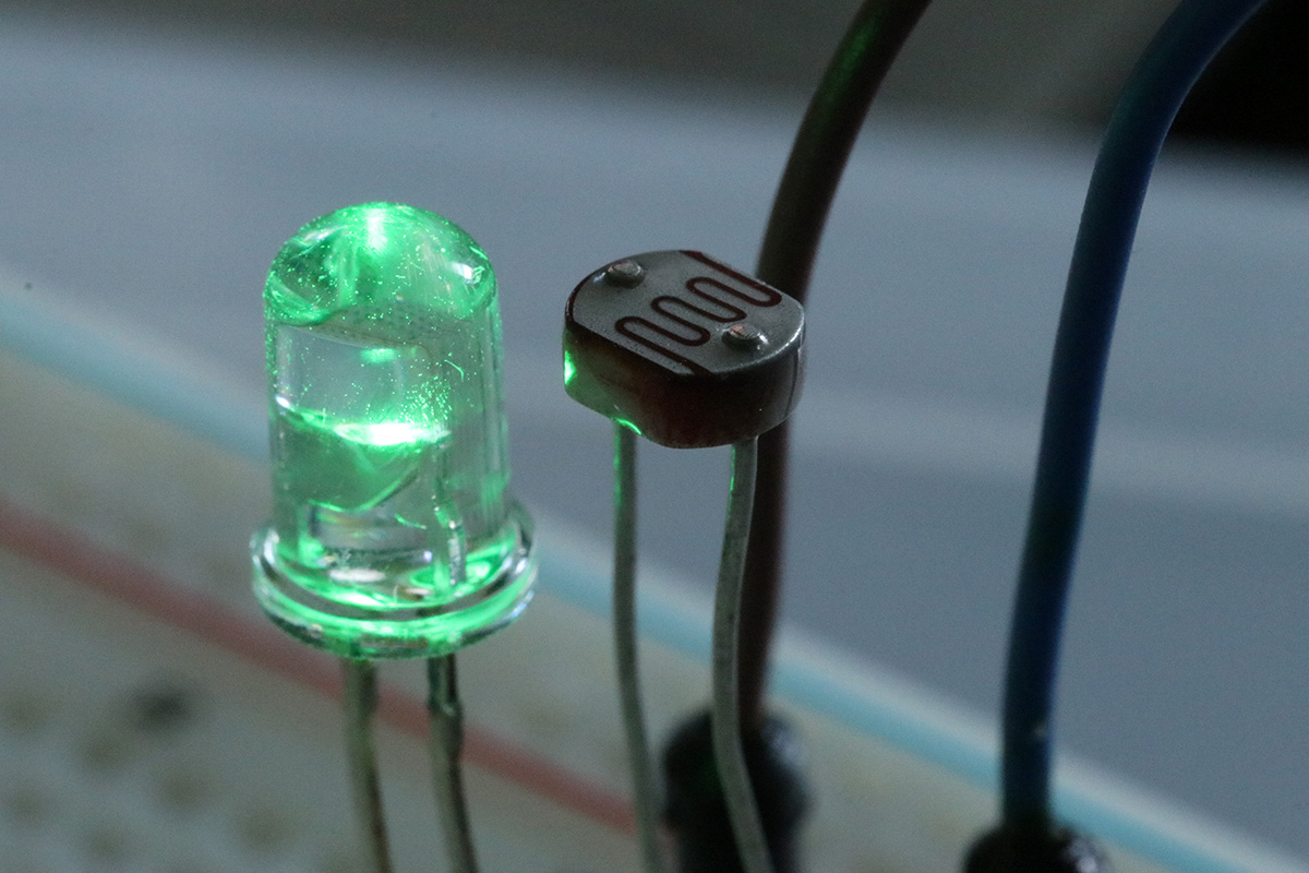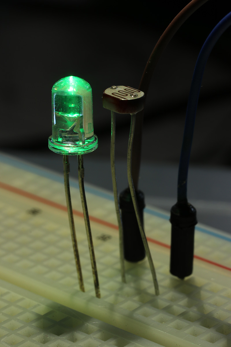 while doing some research on photoresistors (or light-dependent resistors, LDR's, as they're also called in the parlance), i came across a youtube video showing a simple way to test an LDR with an led wired onto a breadboard. i first tested the LDR individually (off board), the resistance increasing the darker it gets. that'd mean it'd turn on when opened, off when closed. i want it to do the exact opposite, but haven't gotten to that part yet, although i did watch a video about it, even though i couldn't follow all the steps. also for some reason a lot of these youtube DIY electronic videos are made by indians, sometimes with very thick accents that're hard to follow. i do however appreciate them for trying to share some knowledge. i got the led to work with the LDR but when i tried to power on 2 led's in series it didn't work. it did however work when i connected the led's in parallel.