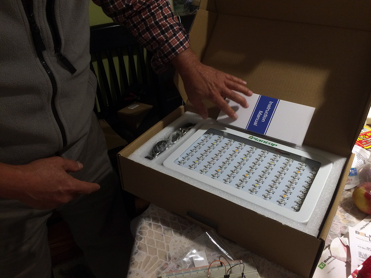 it was simply a matter of replacing the XECCON light with this second iplantop light. but the hanging wires from the iplantop lights were too long (such that the suspended light would dangle precariously close to the top of the plants), while the XECCON hangers are just the right length. so we ended up switching out the wires for one of the iplantop lights, while my father jerryrigged some new shorter hanging cables with leftover wires. something else we talked about yesterday was the idea of keeping the XECCON light. sure, it underperforms with only 100W of actual wattage, but its use of COB leds is something different and the light color is actually more pleasant to the eye compared to the blurple hue of the iplantop lights.