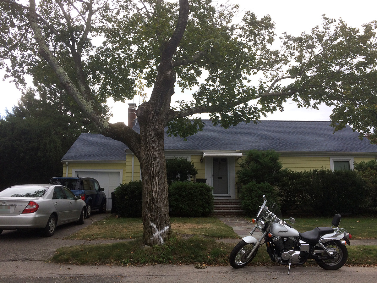 yesterday i saw the tree removal letter from the town of belmont; today i noticed they'd spray painted a white X on the tree trunk, marking it for removal. so it's really going to happen. the question now is: how soon? and what will they plant in its place?
