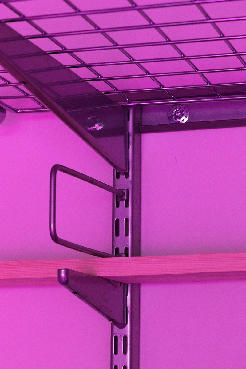i helped my father set up a shelving unit in our basement grow room. these are elfa brand, which i never heard of before but sounded fancy, like they're italian.