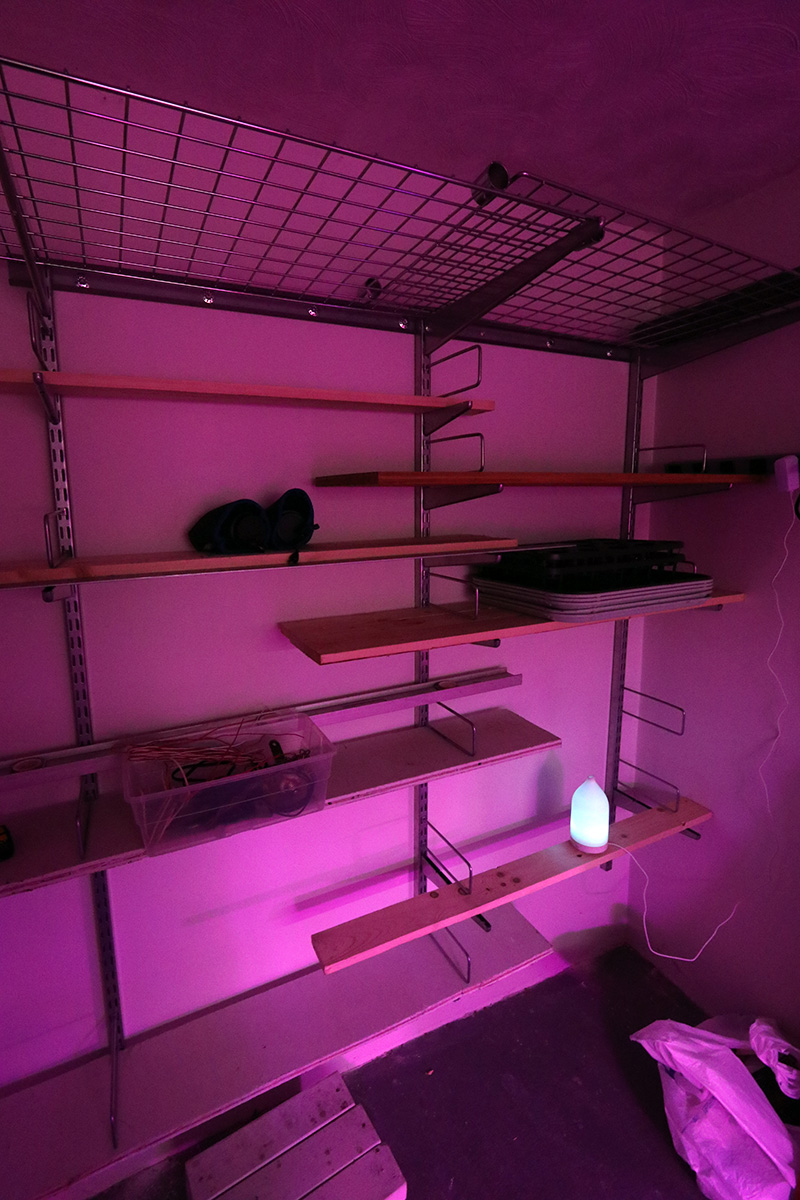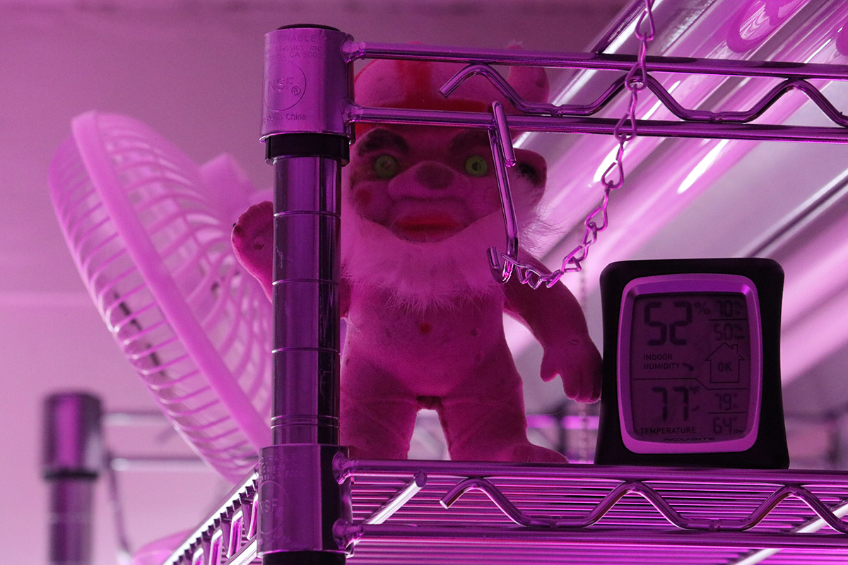 i brought the diffuser into the basement to mask some of the mildew odor. it wasn't so bad today, but i think it was because we worked with the door open in the grow room, which provided enough ventilation. i added some lily-of-the-valley essential oil scent to the diffuser.