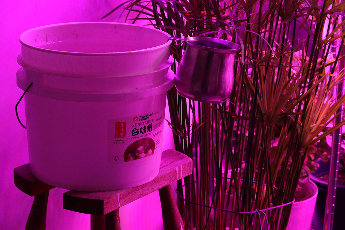 the bucket of water we use to water the grow room plants with have been dosed with mosquito bits; not to control the mosquitoes, but rather to keep fungus gnats from taking hold in the soil. the water i get from our rain water barrel, feels like i'm getting water from a well every time i do it, except instead of well water, it's actually rain water.