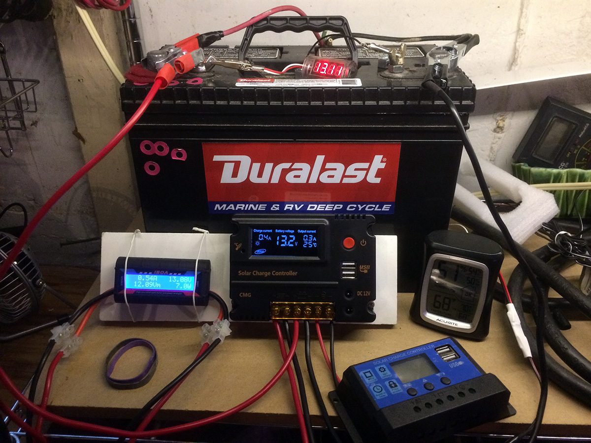that made me suspicion though, so i went to the basement to take some readings of the 62lbs. solar charged 85Ah duralast deep cycle marine battery that we use to run our water barrel pump. the wattmeter, the controller, and the voltmeter all read around 13V. when i probe the wattmeter source (input) connector, it read 13V, just like what it said on the display. however, when i disconnected the wires and measured them directly with a multimeter, it read 20V.